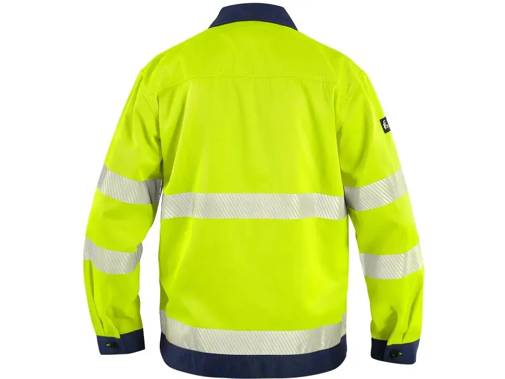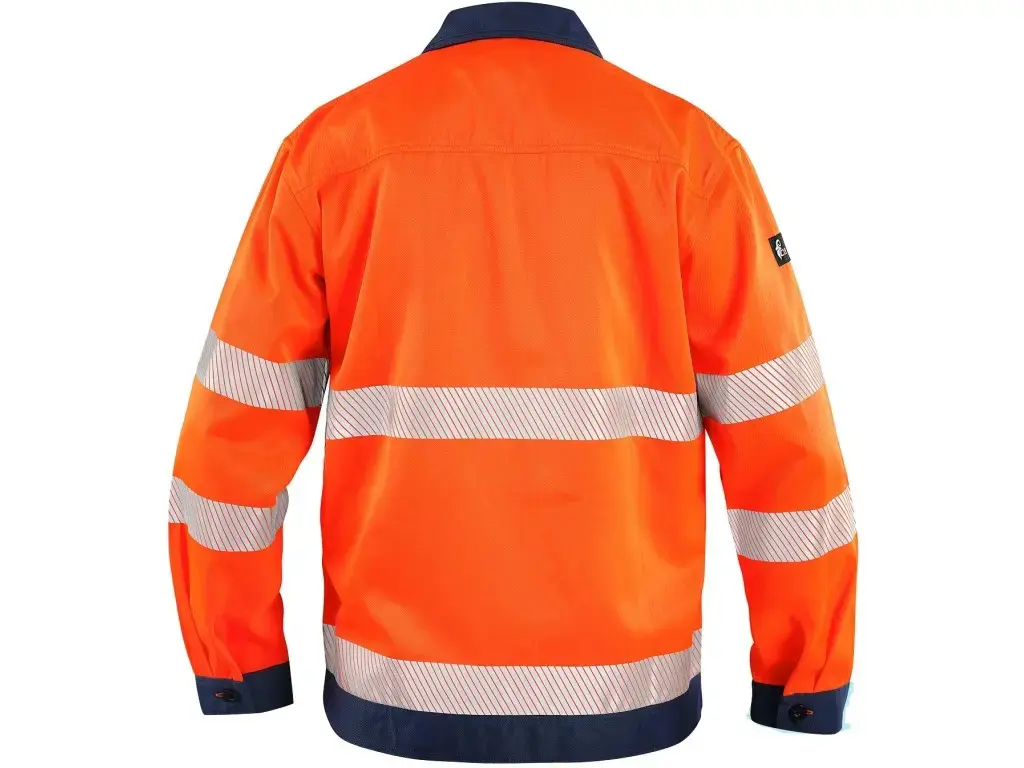 Pánská výstražná blůza se segmentovanými reflexními pásky (šířka 5 cm). Pevná keprová vazba zajišťuje pevnost a odolnost materiálu. Blůza je vybavena krytým zapínáním na plastové knoflíky, náprsními kapsami s klopou na suchý zip – levá se skrytou kapsou na zip, pravá s menší kapsou na tužku a bočními kapsami. Manžety rukávů jsou zapínány na plastový knoflík. Doporučené použití: stavebnictví, silničáři, řidiči, údržba, logistika, letecká a lodní doprava, popeláři, záchranáři. Svrchní materiál 65 % polyester 35 % bavlna, Gramáž 280 g/m2 Velikosti: 46-64