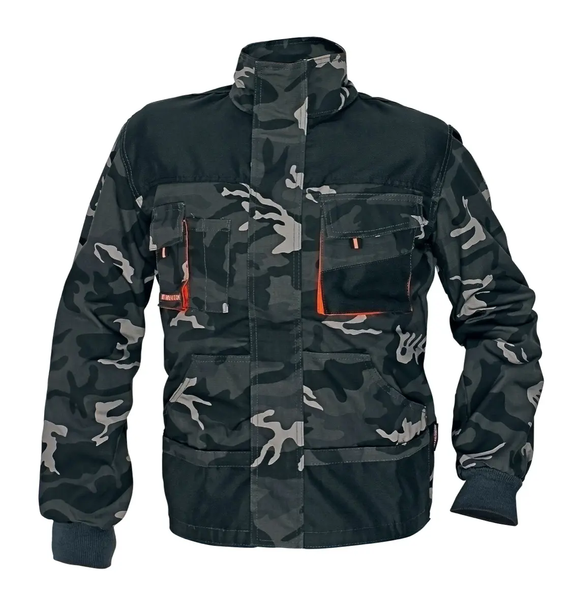 Montérková bunda pohodlného střihu a vysoké odolnosti. Namáhaná místa vyztužena materiálem polyester 600D, větrací síťky v podpaží, mnoho praktických kapes.