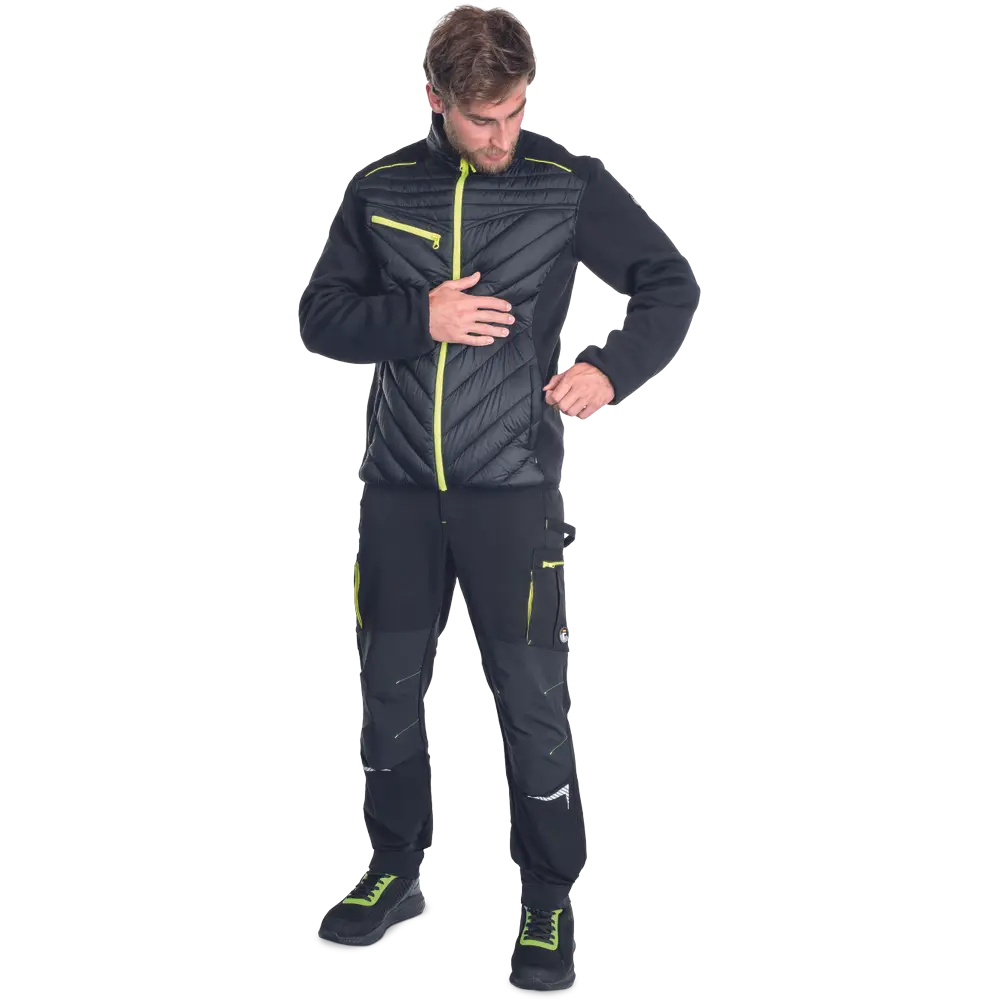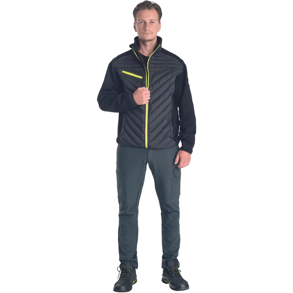 Pánská bunda s kombinací prošívaného mateiálu a pletených rukávů, zvýraznění hi-vis a reflexními detaily, dvě boční kapsy, náprsní kapsa na zip. Vlastnosti oděvů: Reflexní prvky, údržba: Perte šetrně na 40 °C, Nebělte. Nesmí se bělit peroxidovými ani chlorovými přípravky, nesušte v sušičce, nežehlete. Při žehlení hrozí nevratné poškození, chemické čištění zakázáno, Svrchní materiál: 100 % polyamid (nylon), Vnitřní podšívka: 100 % polyester, Vnitřní izolace: 100 % polyester. Velikosti XS-XXXXL