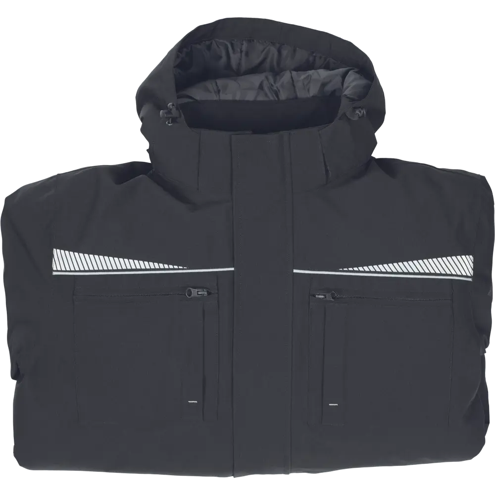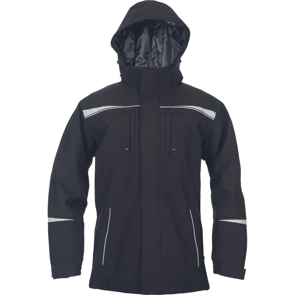 Bunda pracovní nepromokavá zimní parka EMERTON STR, s odepínatelnou zateplenou kapucí, zapínání na zip s překrytím klopy na suchý zip, dvě boční kapsy na zip a dvě náprsní kapsy, dvě vnitřní kapsy, elastické manžety rukávů, reflexní detaily a lemování. Normy: EN ISO 13688, Vlastnosti oděvů: Reflexní prvky, Průmysl: Přeprava a skladování, Údržba: Perte šetrně na 40 °C, Nebělte. Nesmí se bělit peroxidovými ani chlorovými přípravky, Nesušte v sušičce, Nežehlete. Při žehlení hrozí nevratné poškození, Chemické čištění zakázáno. Materiál: Svrchní materiál: 100 % polyester, 210 g/m2 , Povrstvení: TPU, Vnitřní podšívka: 100 % polyester, Vnitřní izolace: 100 % polyester. Vel. S-XXXXXL