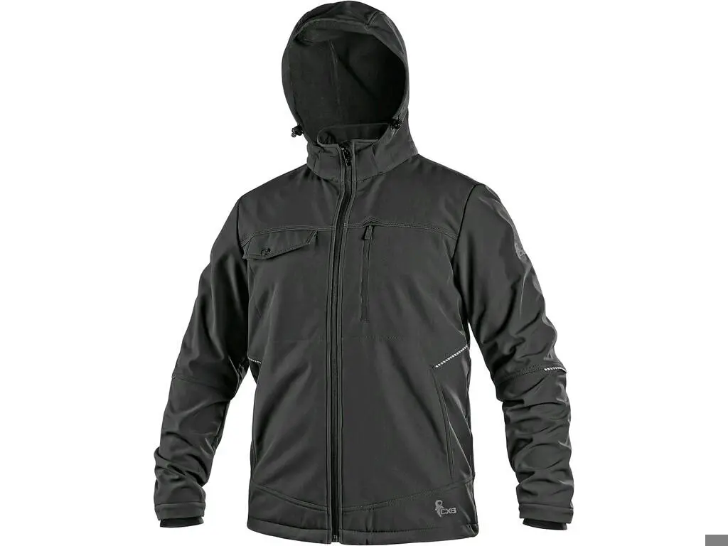 Pánská softshellová bunda, odolná proti vodě a větru, odepínací kapuce, větrání v podpaží, náprsní kapsy - na druk a zip, boční kapsy na zip, vnitřní manžety v rukávech, stahování v dolním okraji, reflexní doplňky, vnitřní náprsní kapsa, TPU membrána. Odolnost materiálu proti průniku vody 5 000 mm mimo oblast švů, paropropustnost 5 000 g/m2/24 h. Podšívka kombinovaná s fleecem