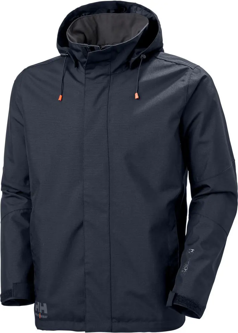 Voděodolná pracovní bunda "Oxford". Voděodolné (10.000mm vodní sloupec), prodyšné (10.000g/m2 za 24h), fleece na vnitřní straně límce, odnímatelná, nastavitelná kapuce se stahovací šňůrkou a zarážkou, vyztužené rukávy pro optimální volnost pohybu, nastavitelné manžety se suchým zipem, nastavitelný lem se šňůrkou, ochrana brady, YKK zipy, 2 boční kapsy se zipem, náprsní kapsa uvnitř, podlepené švy, prodloužená záda, certifikováno podle EN 343:2019 třída 3, 4, certifikát bluesign®, reflexní detaily, pratelné na 40°, lze sušit v sušičce při nízké teplotě. Velikosti: XS – 4XL.