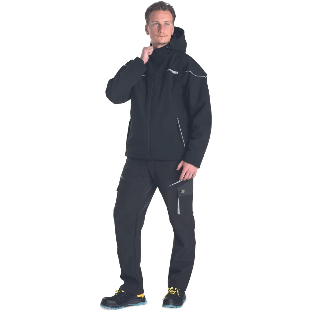 Bunda zimní softshellová EMERTON STR, se zateplenou kapucí a zapínáním na zip, dvě boční kapsy na zip, jedna levá náprsní kapsa na zip, jedna vnitřní náprsní kapsa, elastické manžety rukávů, vnitřní sněhový pás, ventilace na zip v podpaží, reflexní detaily a lemování, Normy: EN ISO 13688, Vlastnosti oděvů: Reflexní prvky, Průmysl: Přeprava a skladování, Údržba: Perte šetrně na 40 °C, Nebělte. Nesmí se bělit peroxidovými ani chlorovými přípravky, Nesušte v sušičce, Nežehlete. Při žehlení hrozí nevratné poškození, Chemické čištění zakázáno. Svrchní materiál: 96 % polyester , 4 % Spandex, 310 g/m2, fleece , Povrstvení: TPU, Vnitřní podšívka: 100 % polyester, 55 g/m2, taffeta, Vnitřní izolace: 100 % polyester, 80 g/m2. Vel: S-XXXXXL