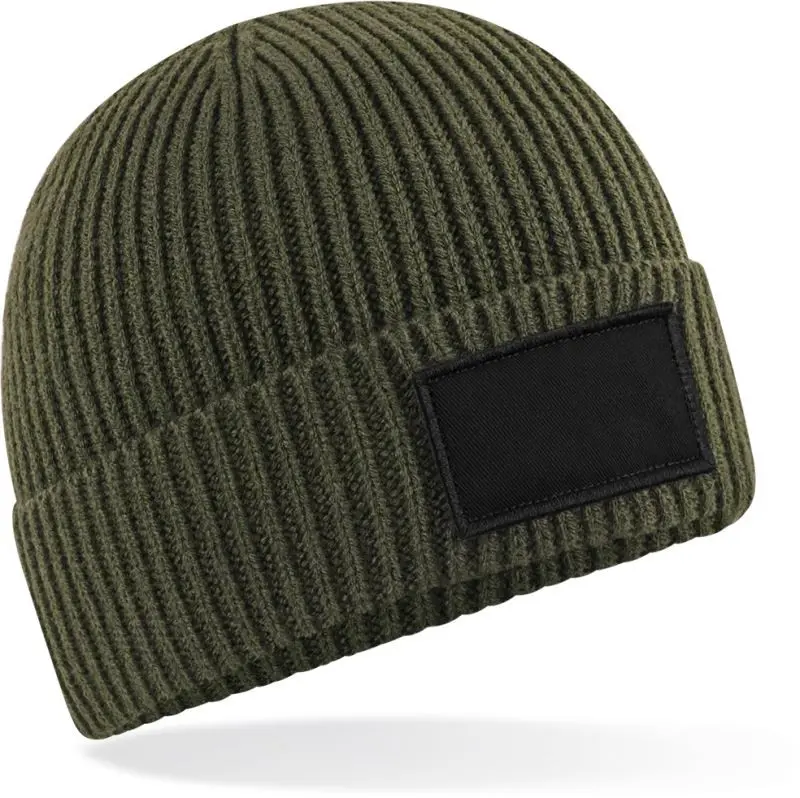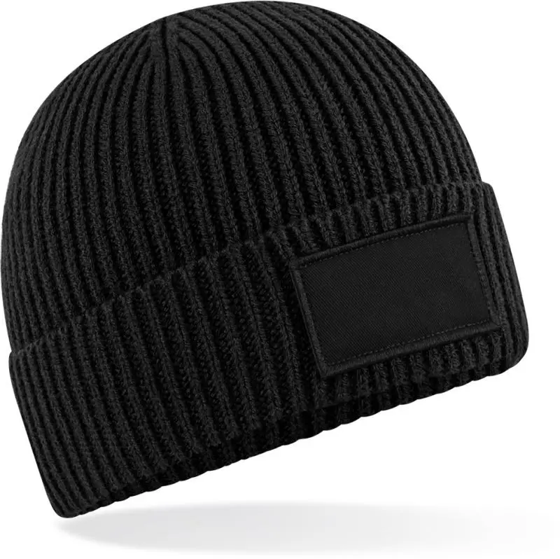 Čepice Patch "Fashion, Materiál: 52% recyklovaný polyester (rPET), 47% akryl, 1% elastan, 1-vrstvý žebrovaný úplet, flexibilní ohrnutý lem, nášivka z bavlněného kepru 7,5x4cm, ruční praní, velikosti: onesize