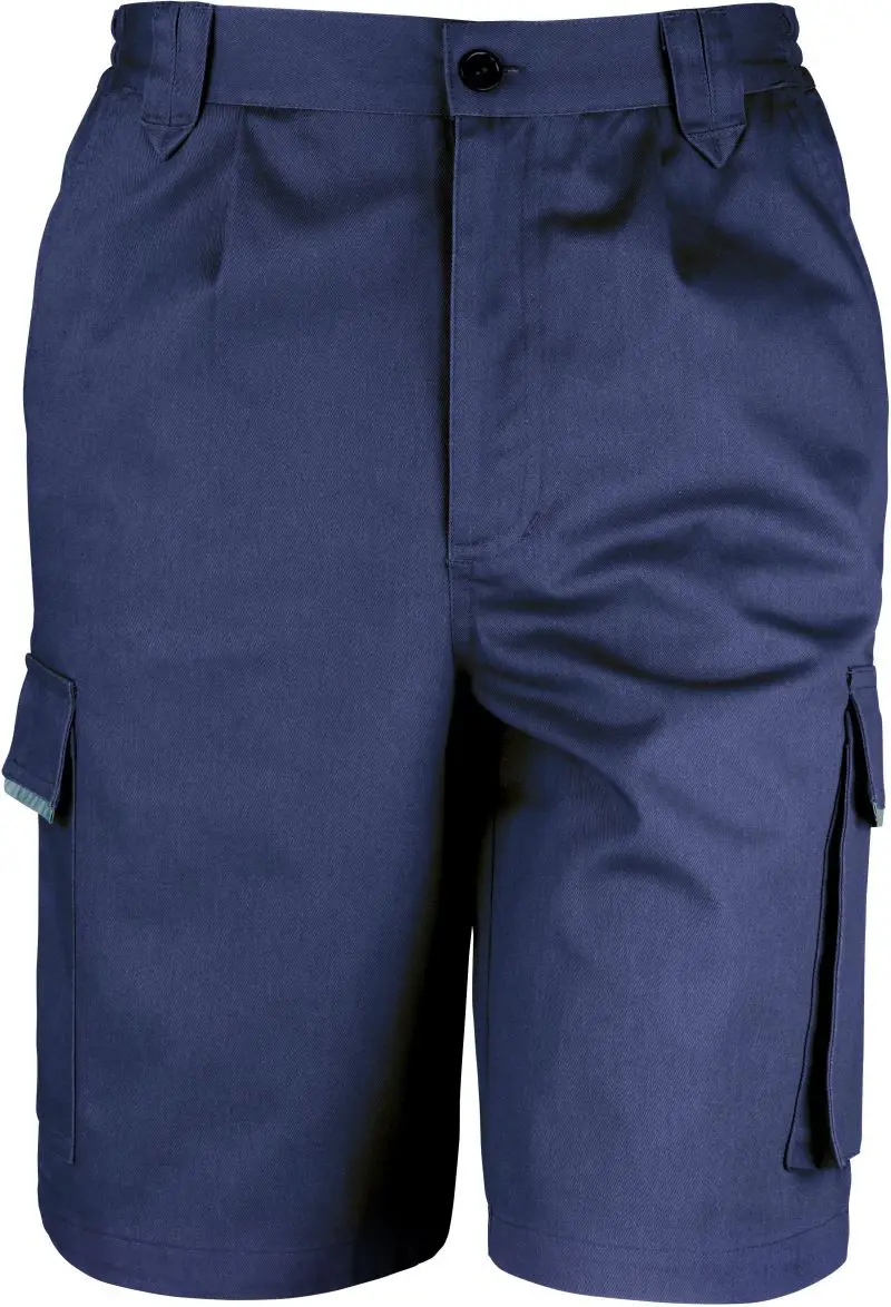 Pracovní kraťasy mají velké přední kapsy, boční kapsy, kapsu na mobil, zadní kapsu na metr, poutko na kladívko, reflexní prvky pro zvýšení viditelnosti. Kalhoty mají elastický pas s poutky a zapínají se pomocí zipu a 1 knoflíčku. Jsou vyrobeny z vysoce odolného a přitom příjemného materiálu.