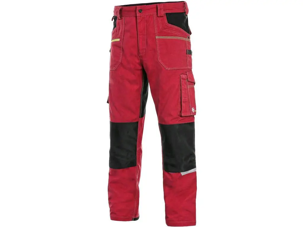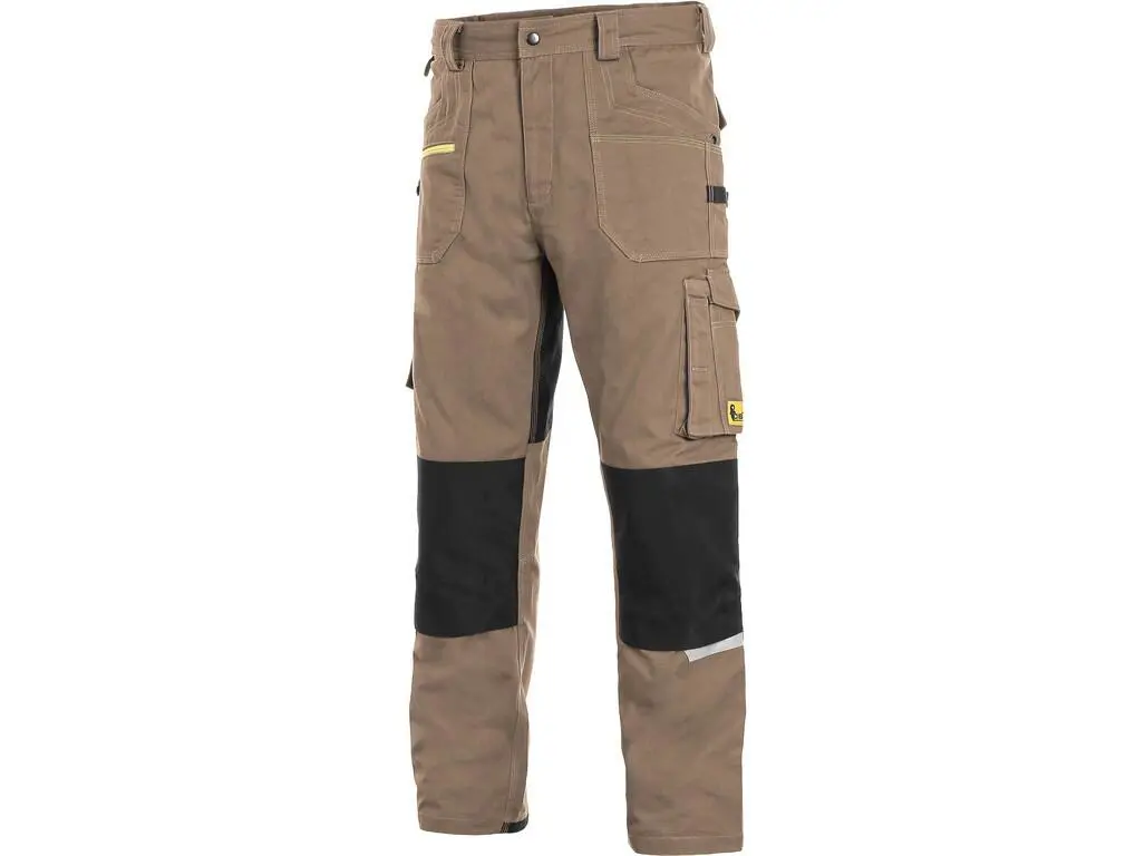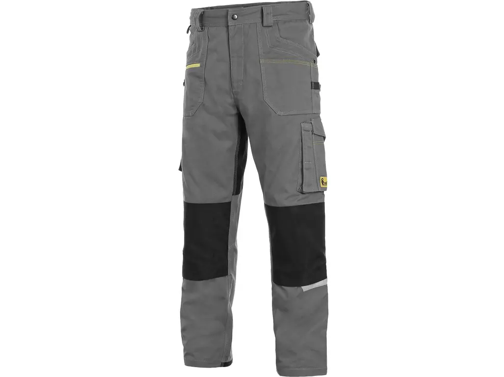 Pánské montérkové kalhoty, strečová tkanina umožňující volný pohyb, pas s poutky na opasek, přední kapsy s kapsou na zip, multifunkční kapsy na obou stranách, kolena zesílena 600D polyesterem s možností vložení kolenních výztuh, dvě zadní kapsy - jedna s klopou, zadní spodní lem nohavice vyztužen 600D polyesterem, reflexní doplňky. Doporučené použití: strojírenství, stavebnictví, lehký průmysl, automobilový průmysl, logistika, skladová manipulace, spedice, autoservisy, údržba, montáže, zemědělství, zahrada, hobby. Materiál: 98% bavlna 2% elastan, 250 g/m2. Velikosti: 46 - 64