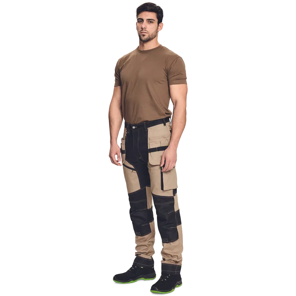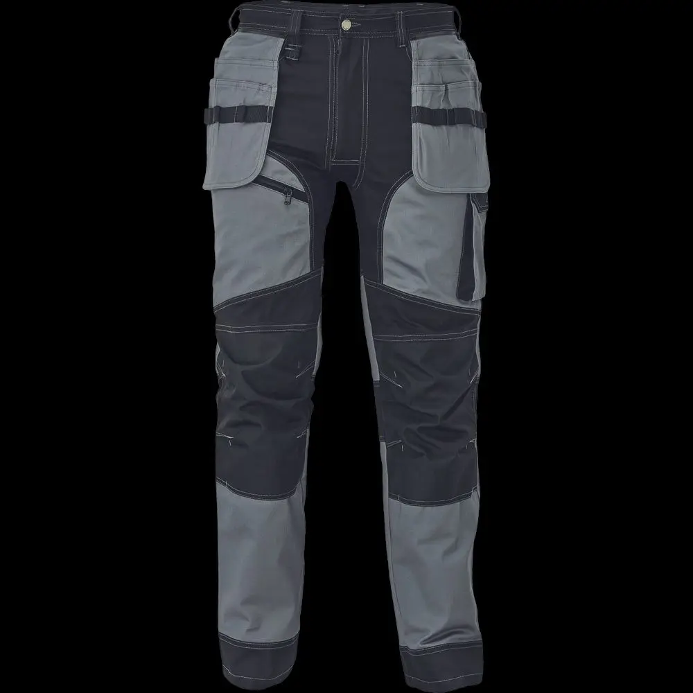 Kvalitní pánské pracovní kalhoty z elastického materiálu; multifunkční kapsy; 2 extra odepínací multifunkční kapsy na zip; zesílená oblast kolen s možností vkládání kolenních výztuh; záložka na nohavici umožňující prodloužení délky až o 5 cm; dekorativní prošití. Specifikace: kapsy pro nákoleníky, prodloužená délka nohavice: 5 cm. Prát na 40 °C, normální proces praní, nebělit, sušení v bubnové sušičce zakázáno, žehlení zakázáno, chemické čištění zakázáno Střih: regular. Velikosti 46 - 62