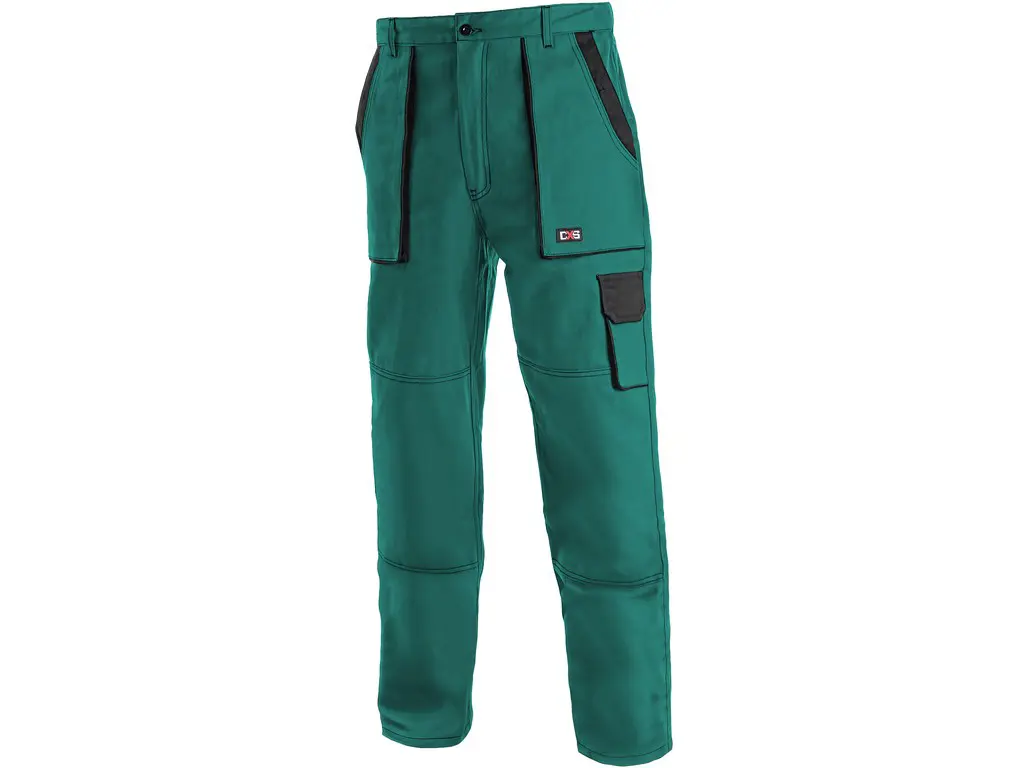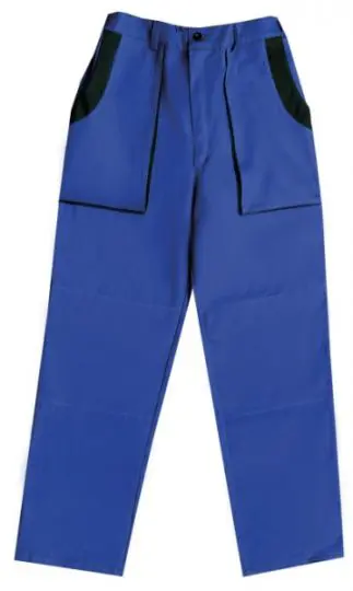 Pánské montérkové kalhoty do pasu, zdvojená kolena, pevný pas vzadu do gumy s poutky na opasek, přední vakové kapsy, boční kapsy na metr a na mobil.