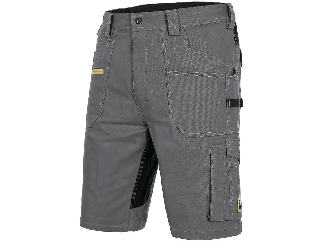 Pánské montérkové kraťasy, strečová tkanina umožňující volný pohyb, pas s poutky na opasek, přední kapsy s kapsou na zip, multifunkční kapsy na obou stranách, dvě zadní kapsy - jedna s klopou. Doporučené použití: letní pracovní oděv, strojírenství, stavebnictví, lehký průmysl, automobilový průmysl, logistika, skladová manipulace, spedice, autoservisy, údržba, montáže, zemědělství, zahrada, hobby. Materiál: 98% bavlna 2% elastan, 250 g/m2. Velikosti: 46 - 64