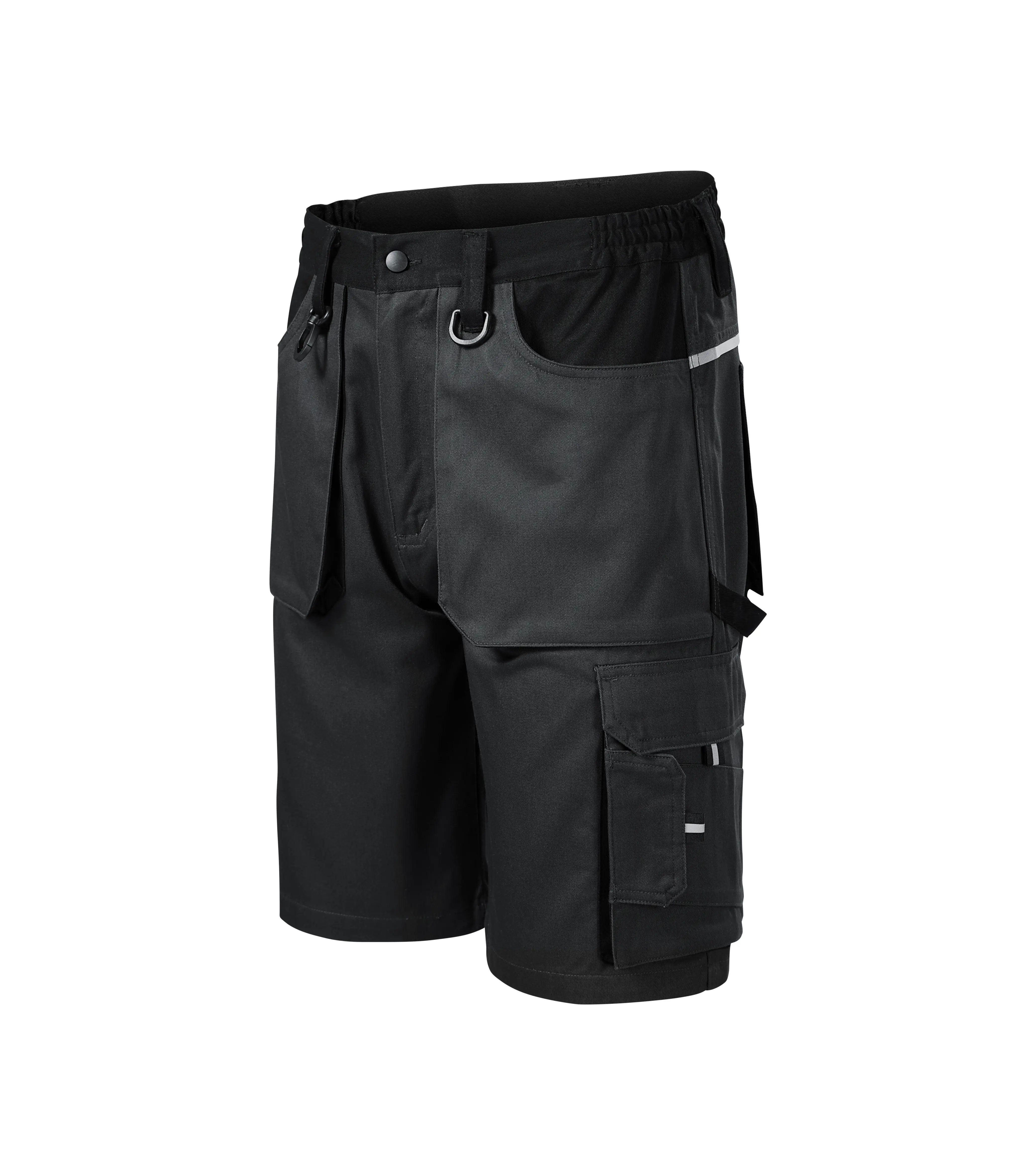Šortky pánské z Kepru 100 % bavlna, pruženka v boční části pasového límce, 7 multifunkčních kapes, zdvojený materiál v oblasti sedu, plastové "D" poutko a karabina na klíče a ID karty, poutko na kladivo, dvojité prošití pro vyšší odolnost