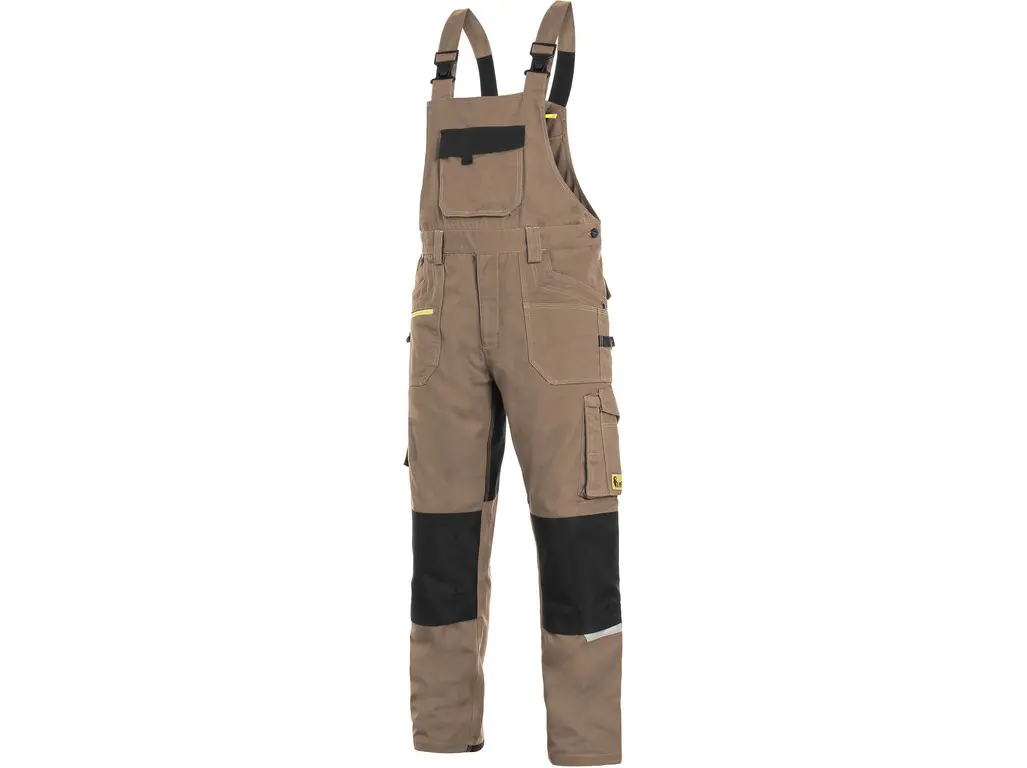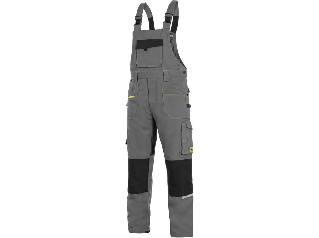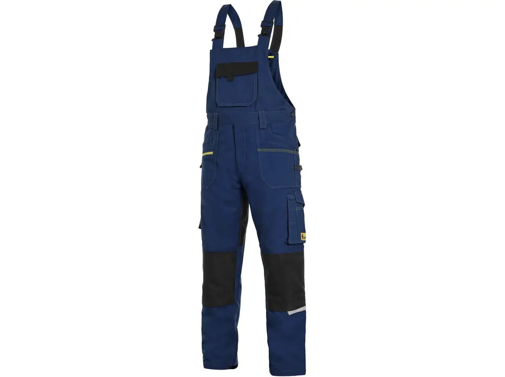 Pánské montérkové kalhoty, strečová tkanina umožňující volný pohyb, pas s poutky na opasek, přední kapsy s kapsou na zip, multifunkční kapsy na obou stranách, kolena zesílena 600D polyesterem s možností vložení kolenních výztuh, dvě zadní kapsy - jedna s klopou, zadní spodní lem nohavice vyztužen 600D polyesterem, reflexní doplňky. Doporučené použití: strojírenství, stavebnictví, lehký průmysl, automobilový průmysl, logistika, skladová manipulace, spedice, autoservisy, údržba, montáže, zemědělství, zahrada, hobby. Materiál: 98% bavlna 2% elastan, 250 g/m2. Velikosti: 46 - 64