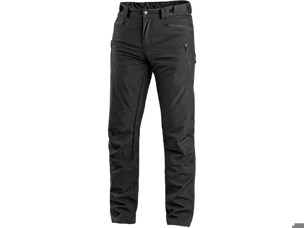 Pánské softshellové kalhoty pro volný čas, flexibilní pas s možností upravení velikosti, poutka na opasek, 4 přední kapsy, zadní kapsa na zip, větrání na stehně a v zadní kolenní části, reflexní doplňky, TPU membrána. Odolnost materiálu proti průniku vody 5000 mm mimo oblast švů, paropropustnost 5000 g/m2/24h.