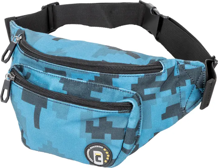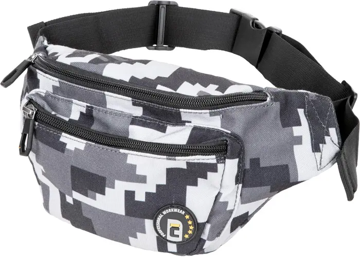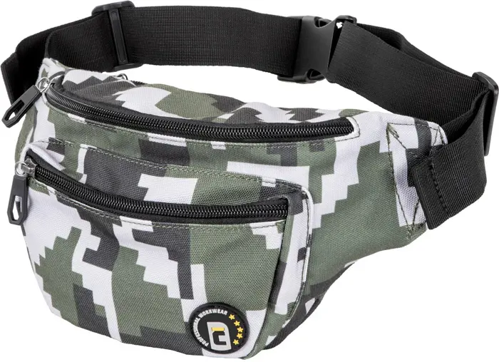 Multifukční tří prostorová ledvinka v moderním maskáčovém vzoru, 1 vnitřní kapsa na zip, pasový popruh s nastavením délky a upínáním na sponu. Materiál: 100 % polyester