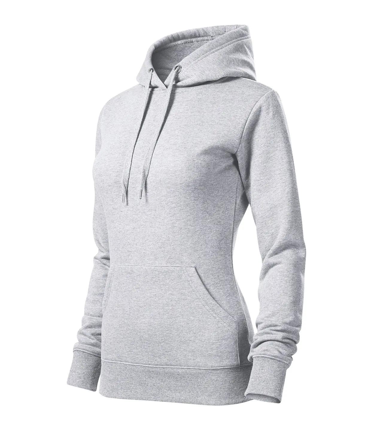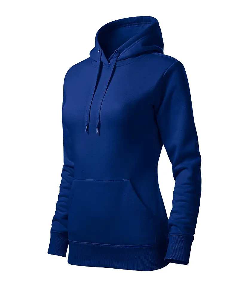 Mikina dámská, lehce vypasovaný střih s bočními švy, kapuce s podšívkou, na stažení šňůrkou, vnitřní část průkrčníku začištěna páskou v barvě vrchového materiálu, nakládaná kapsa ve stylu klokanky, dolní lem a manžety rukávů z žebrového úpletu 2:2 s 5 % elastanu, vnitřní strana počesaná. Materiál: Výplňková pletenina, vnitřní strana počesaná, 65 % bavlna, 35 % polyester (barva 12 - složení se může lišit - 85 % bavlna, 15 % viskóza). Velikost: XS-XXL