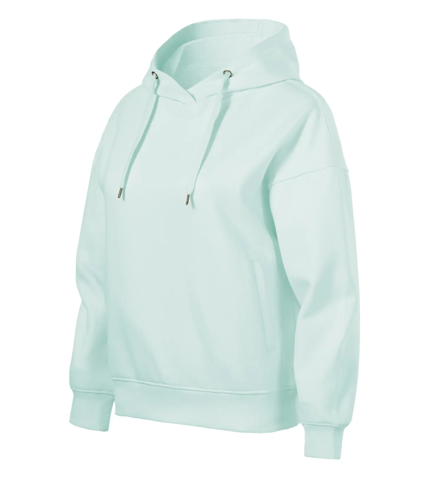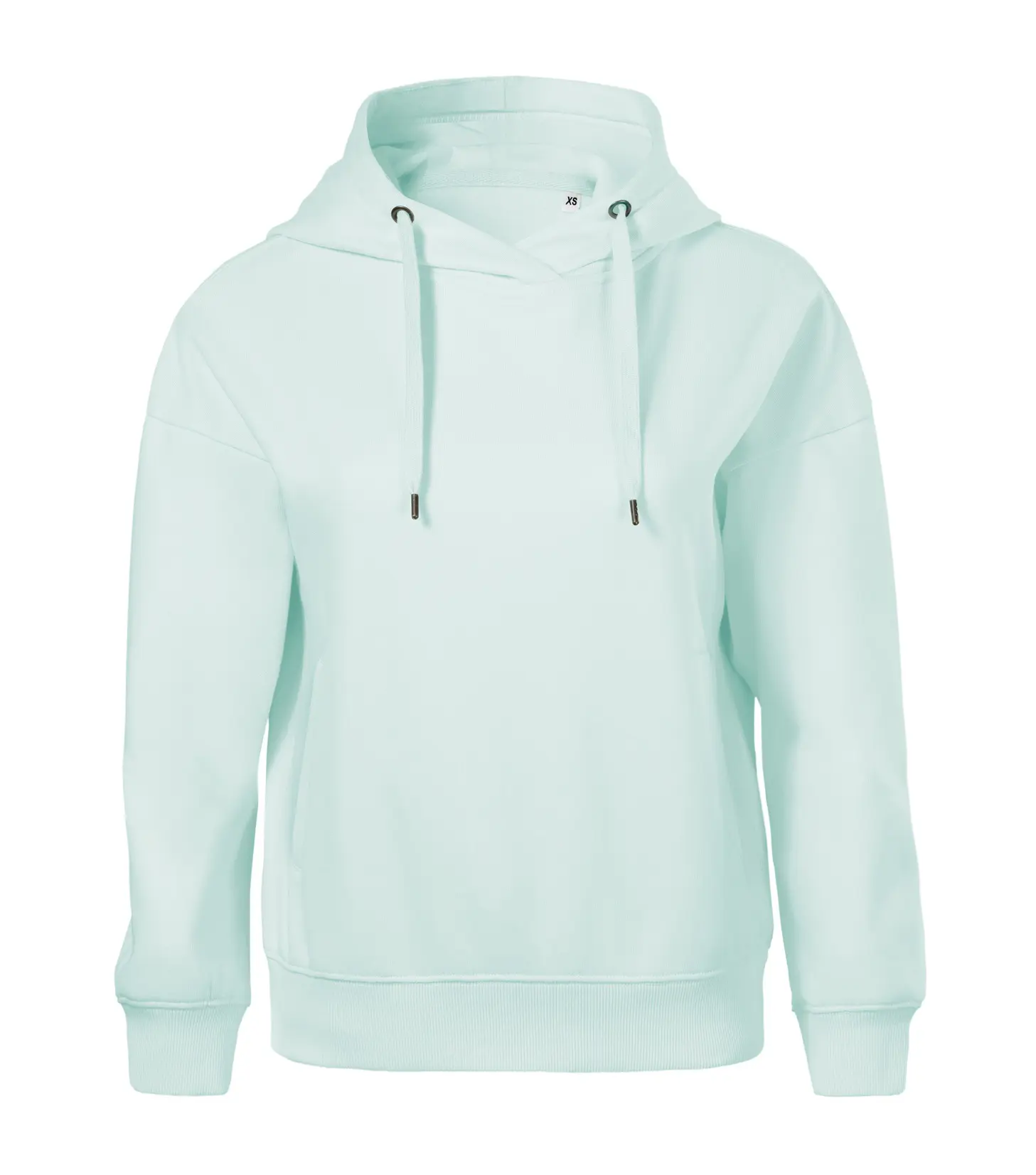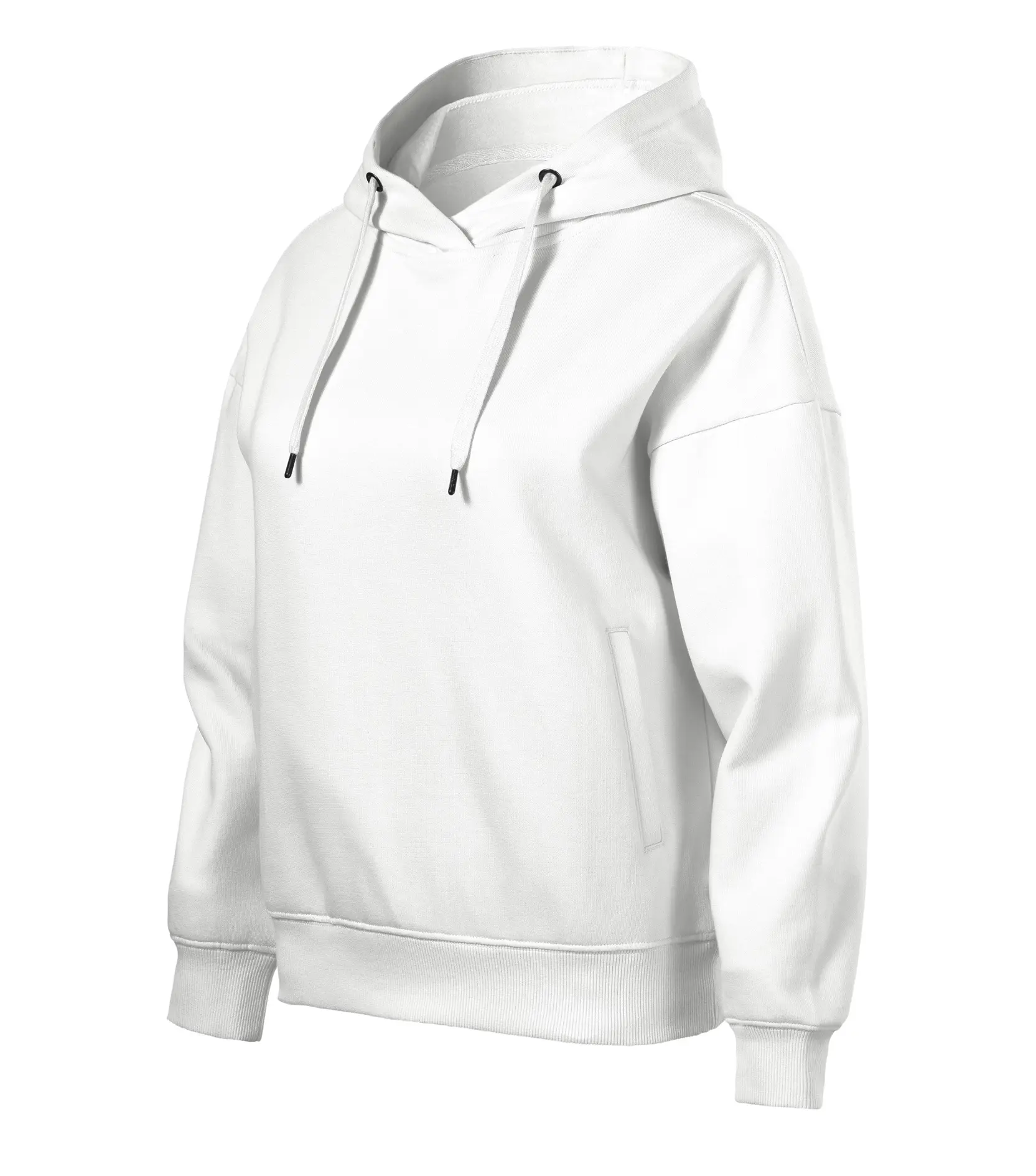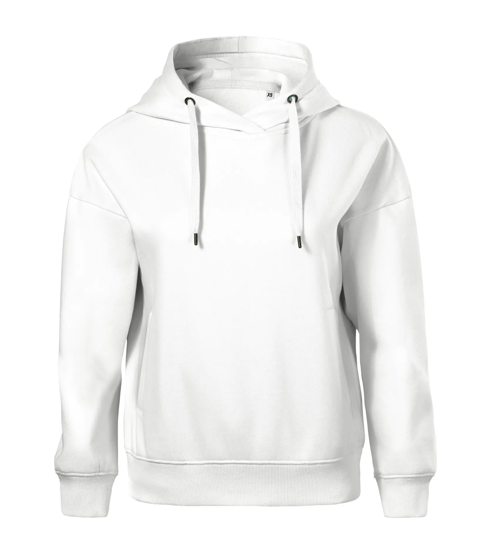 Mikina dámská s kapucí MOON, Výplňková pletenina, vnitřní strana počesaná, 80 % bavlna, 20 % polyester (barva 12 - složení se může lišit - 75 % bavlna, 25 % viskóza), volný střih s bočními švy, kapuce s podšívkou, na stažení šňůrkou, neutrální velikostní štítek v boční části průkrčníku, vnitřní část průkrčníku začištěna páskou v barvě vrchového materiálu, nízkohlavicové rukávy, lištové kapsy ve stylu klokanky, dolní lem a manžety rukávů z žebrového úpletu 2:2 s 5 % elastanu, vnitřní strana počesaná, Zhodnocení: výšivka, sítotisk, transfer digitální, litho transfer, transfer sítotiskový. Velikosti XS - XXL
