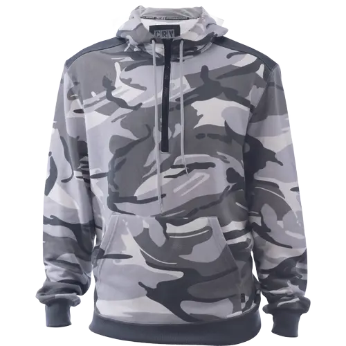 Pánská polopropínací bunda s kapucí a klokaní kapsou, zesílené část v oblasti ramen, elastické náplety na rukávech a spodním obvodu, potištěný nepočesaný výplněk s potiskem Crambe. Materiál: 100 % polyester. Velikosti: XS–3XL