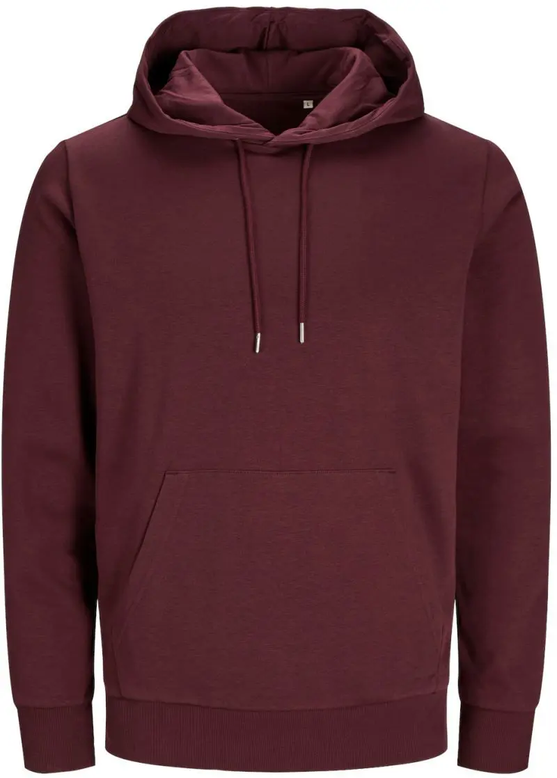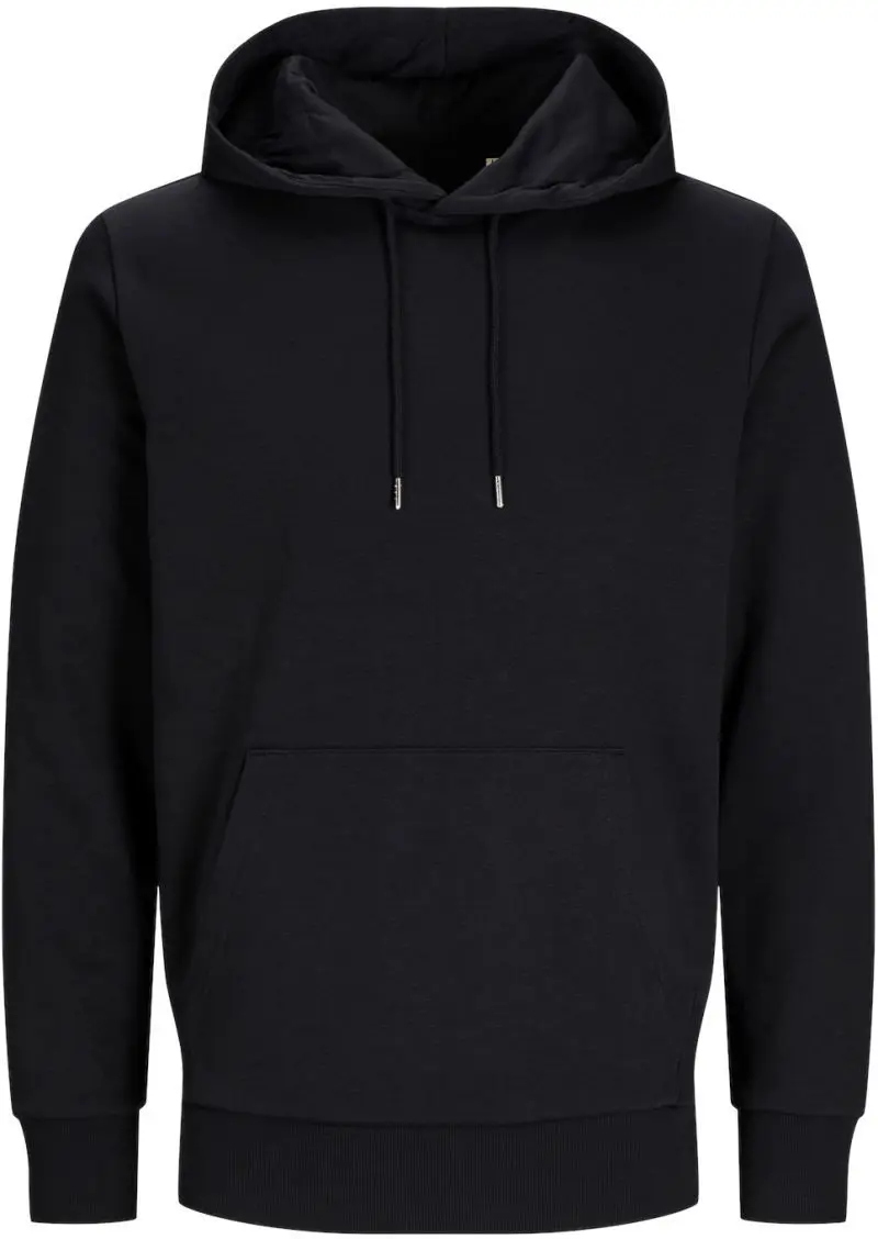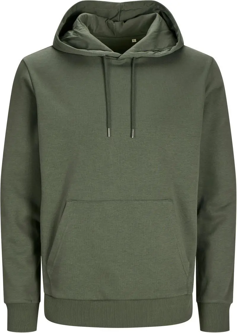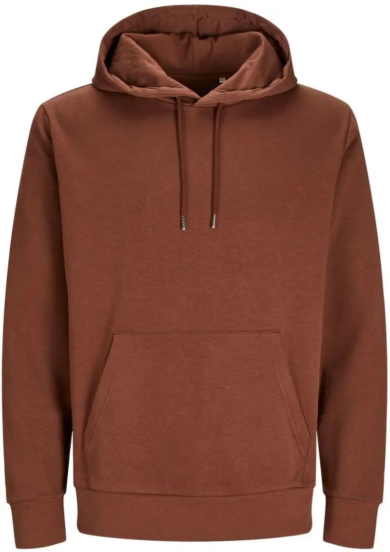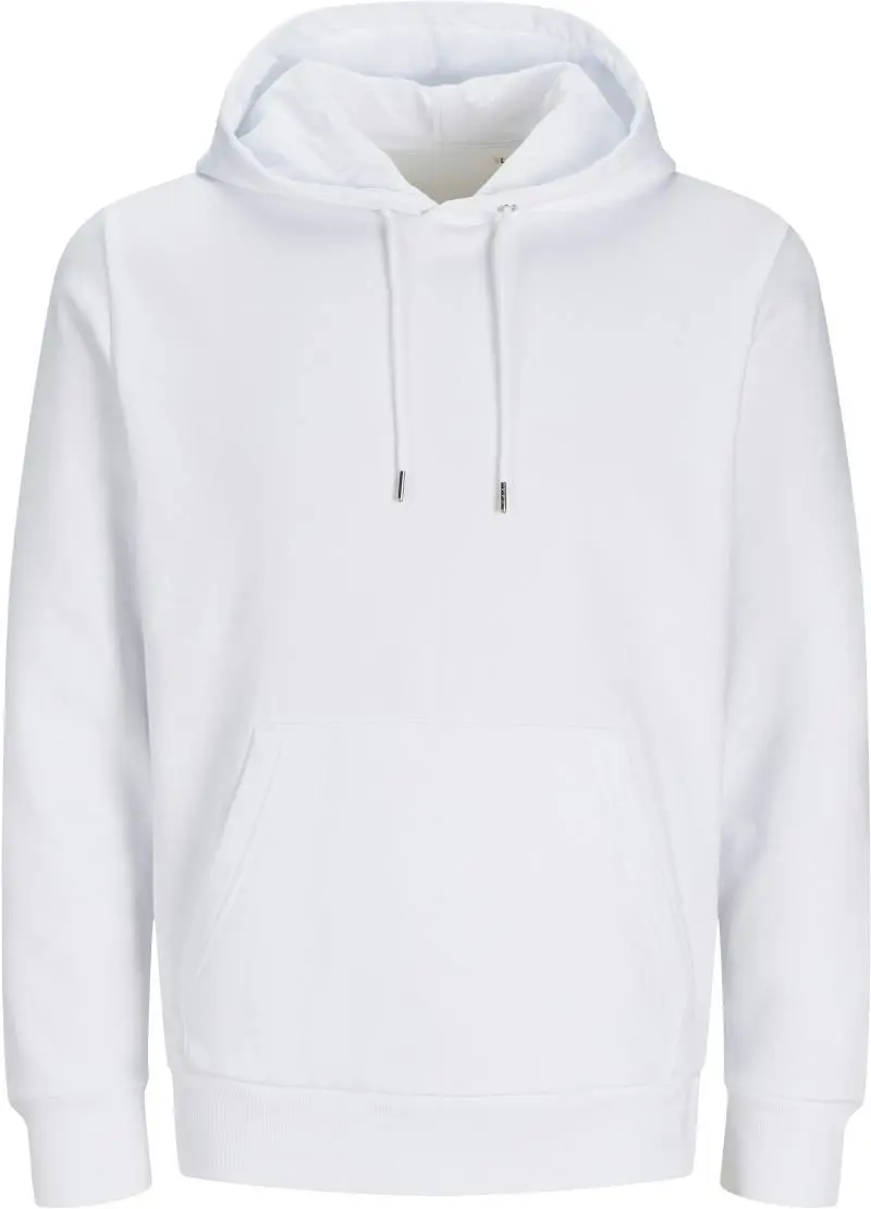 Unisex mikina s kapucí Jack & Jones, 300g/m2, 80% certifikovaná bio bavlna, 20% recyklovaný polyester, klasický střih, podšitá kapuce se šňůrkou s kovovými konci, půlměsícová podsádka na krku, žebrované manžety na rukávech a lemu, klokaní kapsa, uvnitř počesaná, štítek TearAway, neutrální velikostní štítek, pratelné na 40°, lze sušit v sušičce při nízké teplotě. Velikosti: XS-XXXL