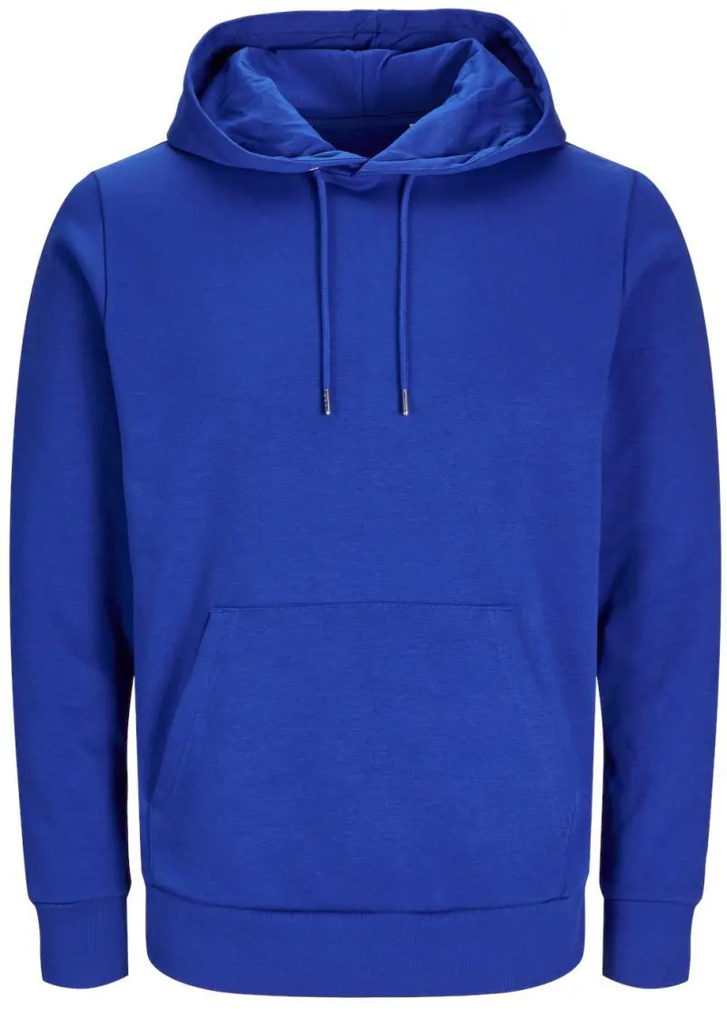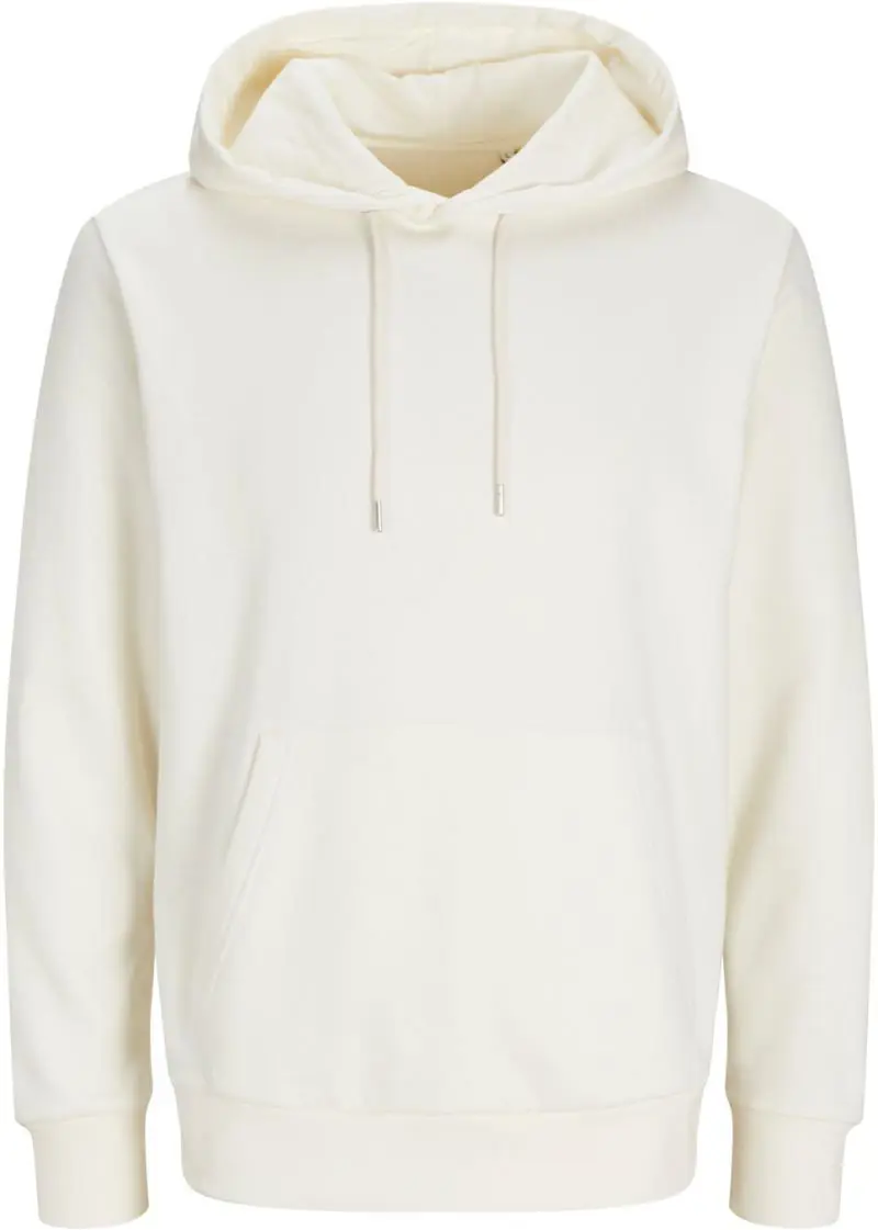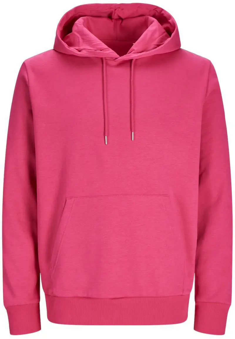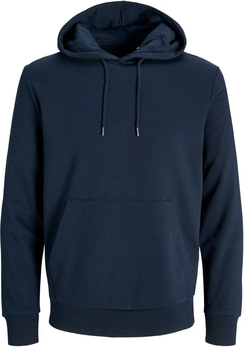 Unisex mikina s kapucí Jack & Jones, 300g/m2, 80% certifikovaná bio bavlna, 20% recyklovaný polyester, klasický střih, podšitá kapuce se šňůrkou s kovovými konci, půlměsícová podsádka na krku, žebrované manžety na rukávech a lemu, klokaní kapsa, uvnitř počesaná, štítek TearAway, neutrální velikostní štítek, pratelné na 40°, lze sušit v sušičce při nízké teplotě. Velikosti: XS-XXXL