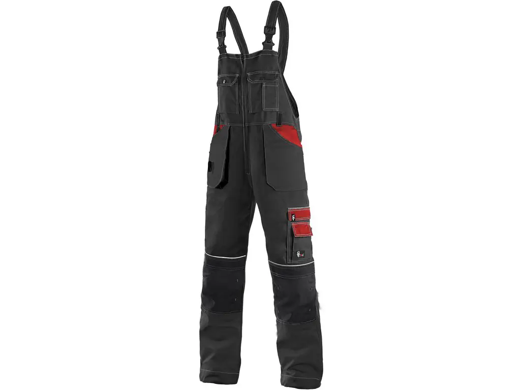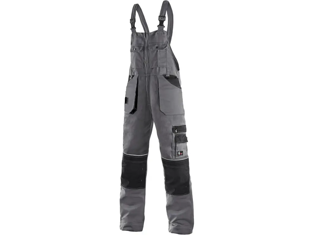 Pánské zateplené zahradníky s náprsenkou, zdvojená kolena s možností vložení kolenních výztuh, klínové přední kapsy a našité kapsy s poutky na nářadí, boční multifunkční kapsy, náprsenka s kapsami a rozepínáním uprostřed, zateplení flanelem, reflexní doplňky. Velikosti 44-46; 48-50; 52-54; 56-58; 60-62