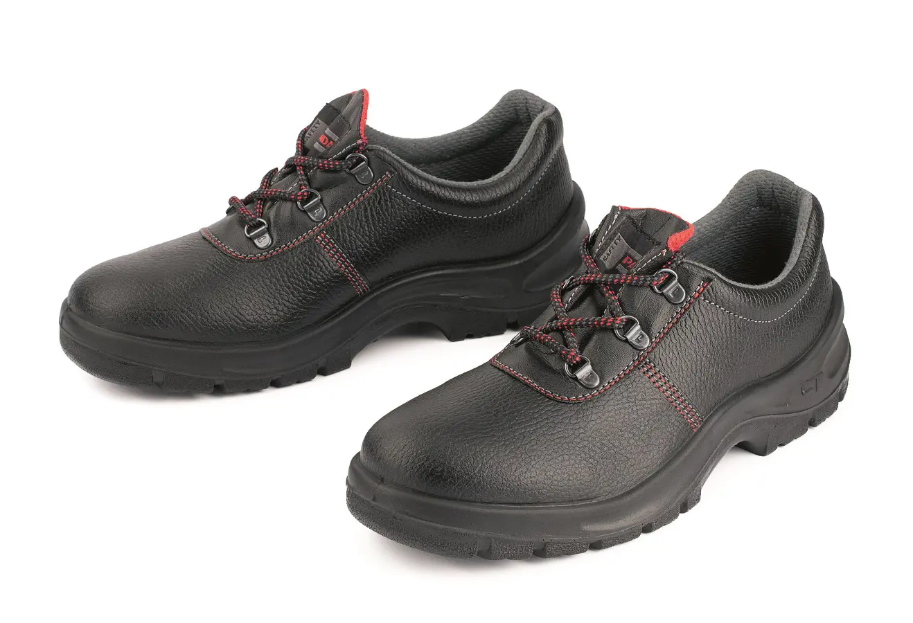 Bezpečnostní polobotky s ocelovou tužinkou, antistatickou a protiskluzovou podrážkou odolnou pohonným hmotám, absorpcí energie v patě a svrškem z prodyšné kůže.