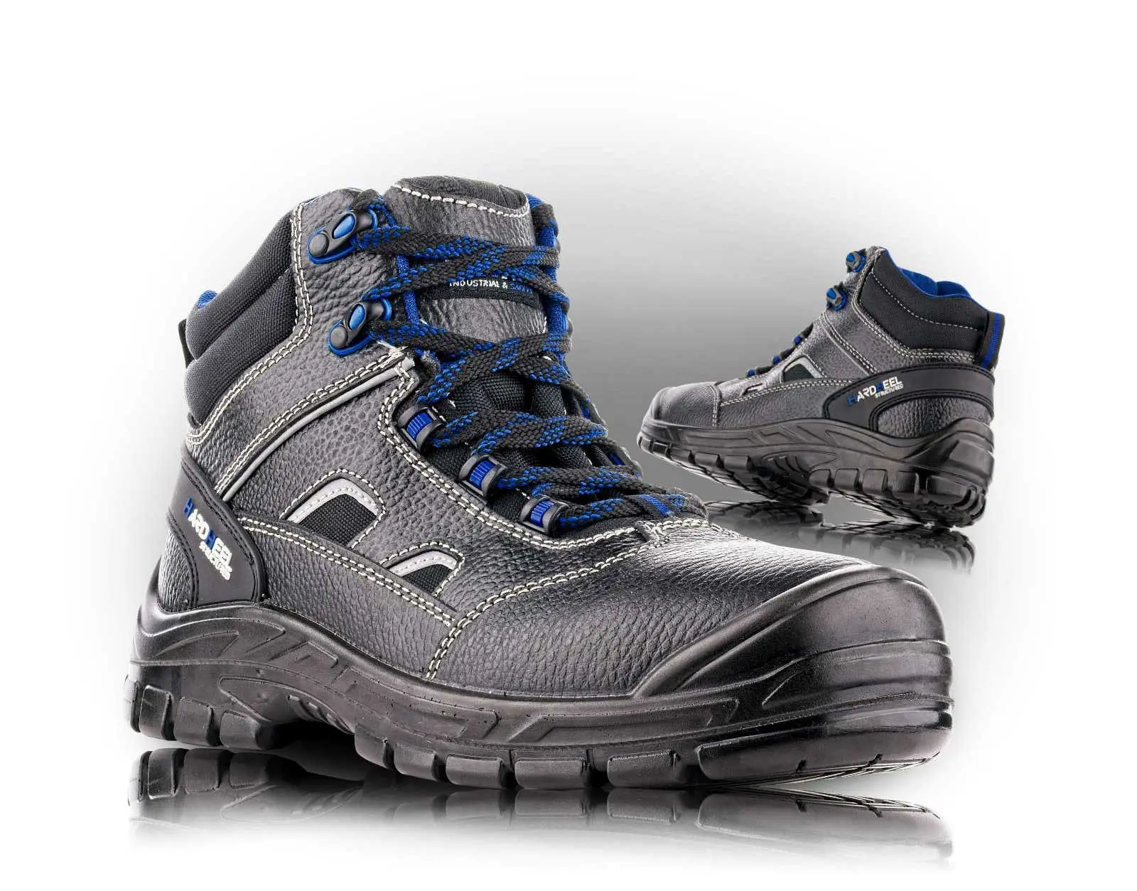 Kožená kotníková pracovní obuv BRUSEL S3 SRC s ocelovou tužinkou a planžetou. Obuv je hydrofobní. Svršek bot je vyroben z lícové hovězinové usně s dezénem v tloušťce 1,8 - 2,0 mm. Podšívkový materiál je z laminované prodyšné textilie MESH, má násakovou schopnost, je paropropustný a oděruvzdorný, splňuje tak veškeré hygienické normy. Stélka bot je anatomicky tvarovaná, z lehčené polyuretanové pěny, která je potažená textilií MESH, stélka je antistatická. Podešev PU/PU je olejivzdorná, antistatická, protiskluzová a má dvousložkový nástřik. Materiál: lícová hovězinová useň s dezénem v tloušťce 1,8 - 2,0 mm, Vlastnosti produktu: celokožená obuv S3, voděodolná kotníková obuv, ocelová tužinka a planžeta, anatomicky tvarovaná stélka