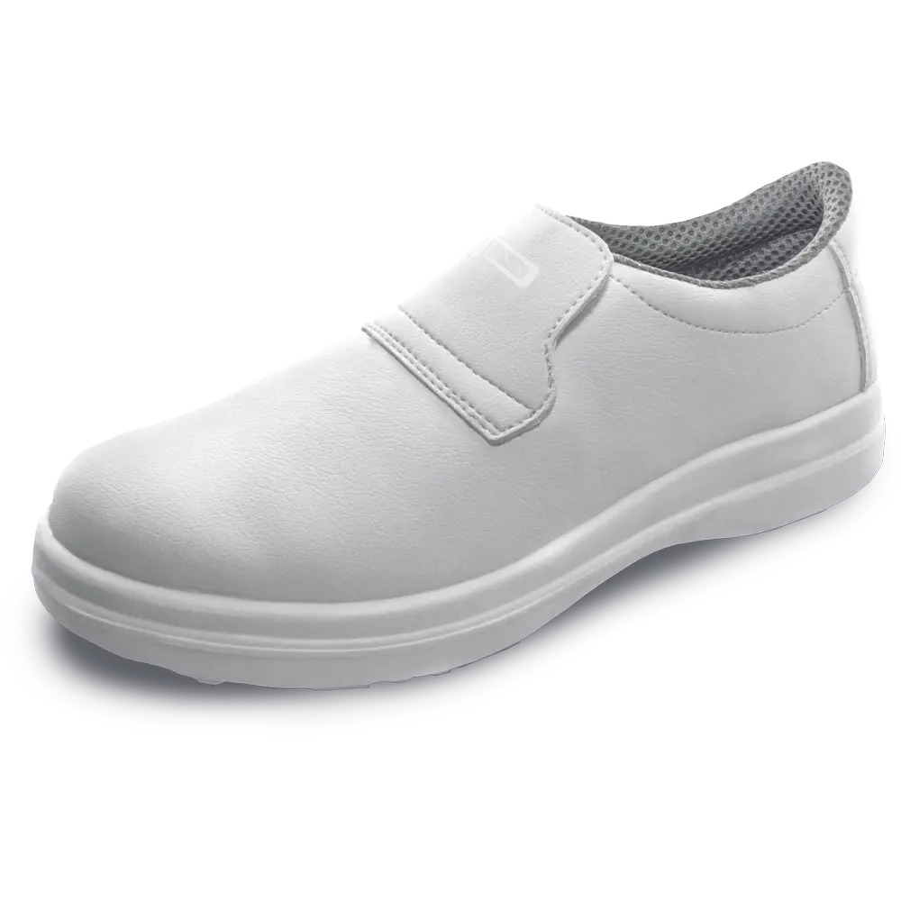 Bezpečnostní mokasíny s antistatickou a protiskluzovou PU podrážkou rezistentní pohonným hmotám, absorpcí energie v patě a svrškem z mikrovlákna s antibakteriální úpravou SANITIZED