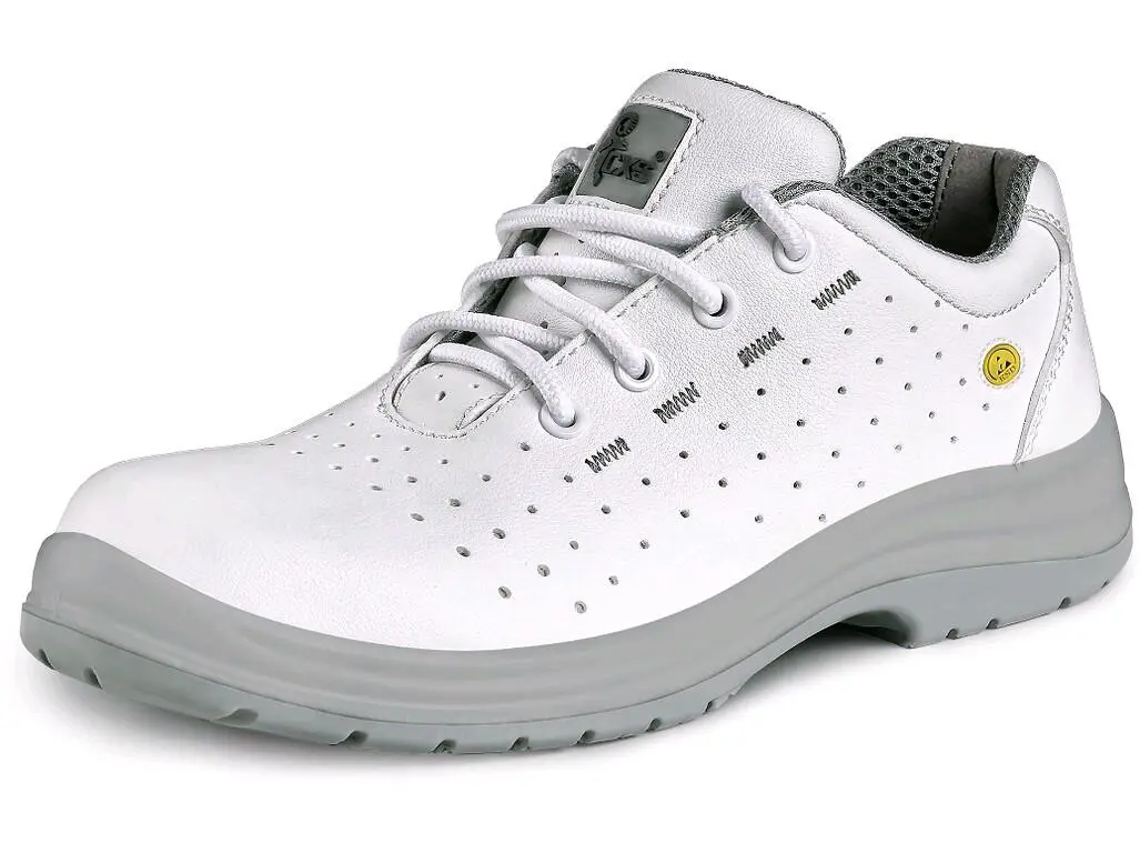 Polobotka, ESD, perforovaná. Materiál: svršek z mikrovlákna o tloušťce 1,8 - 2,0 mm pratelného do 30 °C, podšívka kvalitní prodyšná textilie, PU, antistatická, olejivzdorná, protiskluzová podešev. Materiálové složení: svršek z pratelného mikrovlákna, podšívka kvalitní prodyšná textilie, PU-PU, antistatická, protiskluzová podešev. Velikost: 36-48