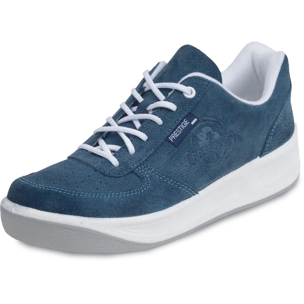 Polobotka v denimové úpravě doplněná odolnými textilními prvky; kotník: molitanové polštářky pro větší pohodlí nohy; podšívka: kvalitní textilní materiál; podešev a mezipodešev: dvoukomponentní polyuretanový nástřik, tlumící nášlapné síly a šetřící pohybový aparát; podešev odolná proti palivovým olejům. Svršek: italská vlasová kůže (semiš). Vel. 36-49