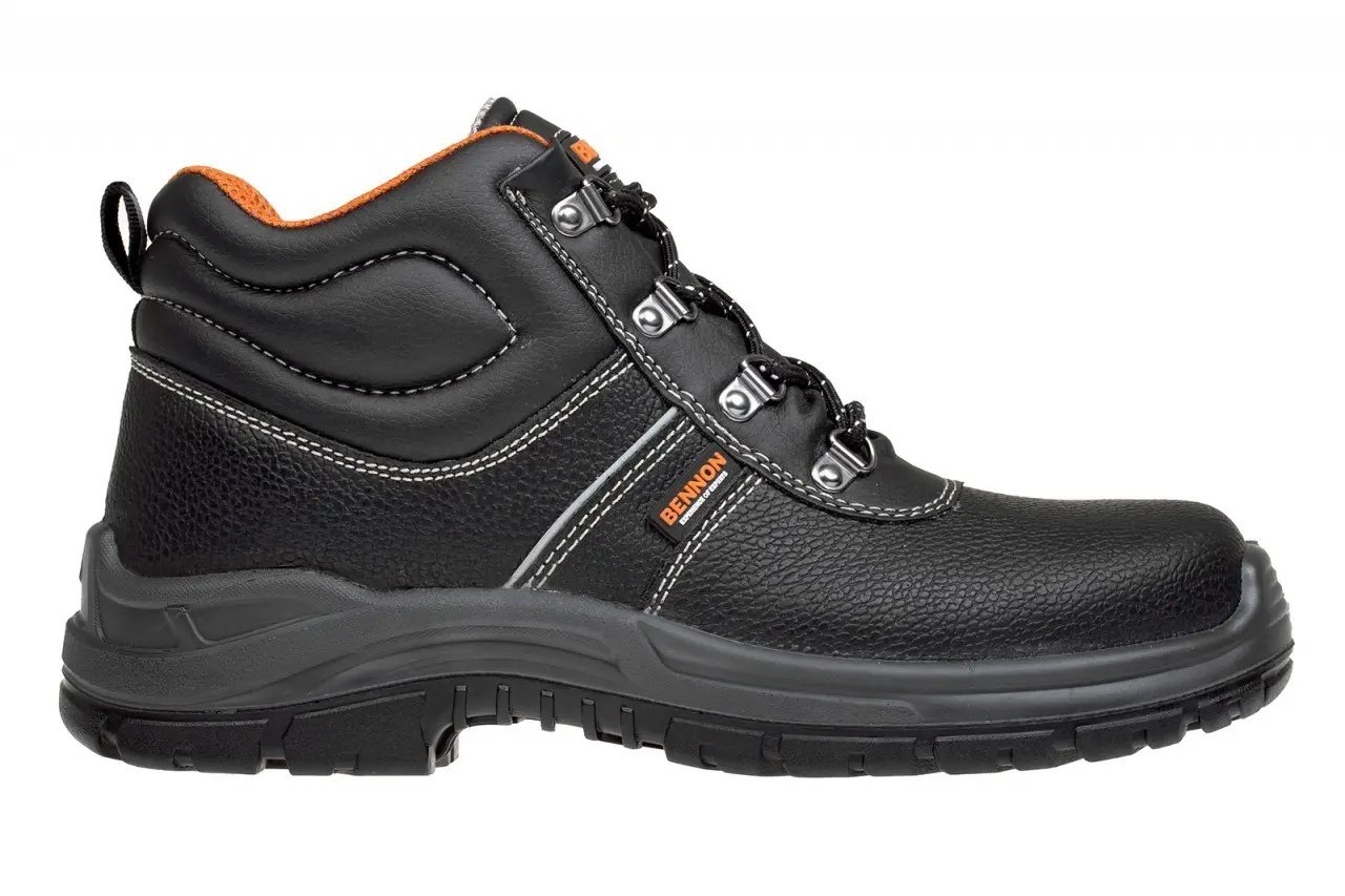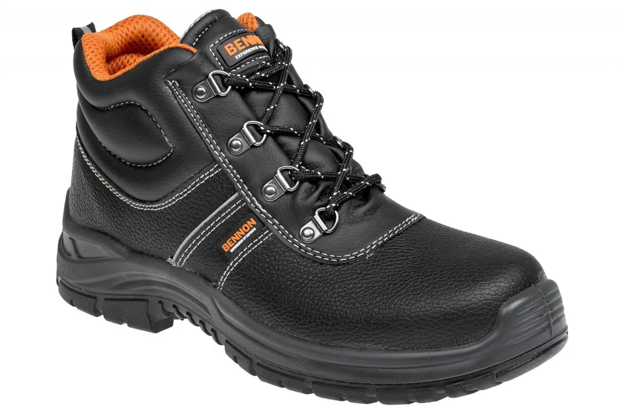 Tradiční kotníková obuv BENNON BASIC S3 HIGH s ocelovou planžetou a tužinkou, vhodná k univerzálnímu využití v různých typech venkovních i vnitřních provozů. Svršek bot je vyroben z hydrofobní hovězinové usně BARTON. Podšívka je textilní, sandwich MESH, struktura tkaniny umožňuje dobré odvětrávání. Stélka D-SOLE je anatomicky tvarovaná, vkládací, vyměnitelná. Podešev polyuretanová SPARTACUS PU/PU. Antistatická obuv. Absorpce energie v oblasti paty. Podešev je odolná pohonným látkám a odolná proti uklouznutí. EN ISO 20345:2011 S3 SRC. Materiál: Barton print hydrofobní hovězinová useň, Vlastnosti produktu:, kotníková obuv S3, svršek z hydrofobní hovězinové usně, ocelová tužinka, ocelová planžeta, textilní podšívka, stélka anatomicky tvarovaná, antistatická obuv, odolnost podešve proti pohonným látkám, odolnost podešve proti uklouznutí, absorpce energie v patě, EN ISO 20345:2011 S3 SRC, Velikosti 36-50