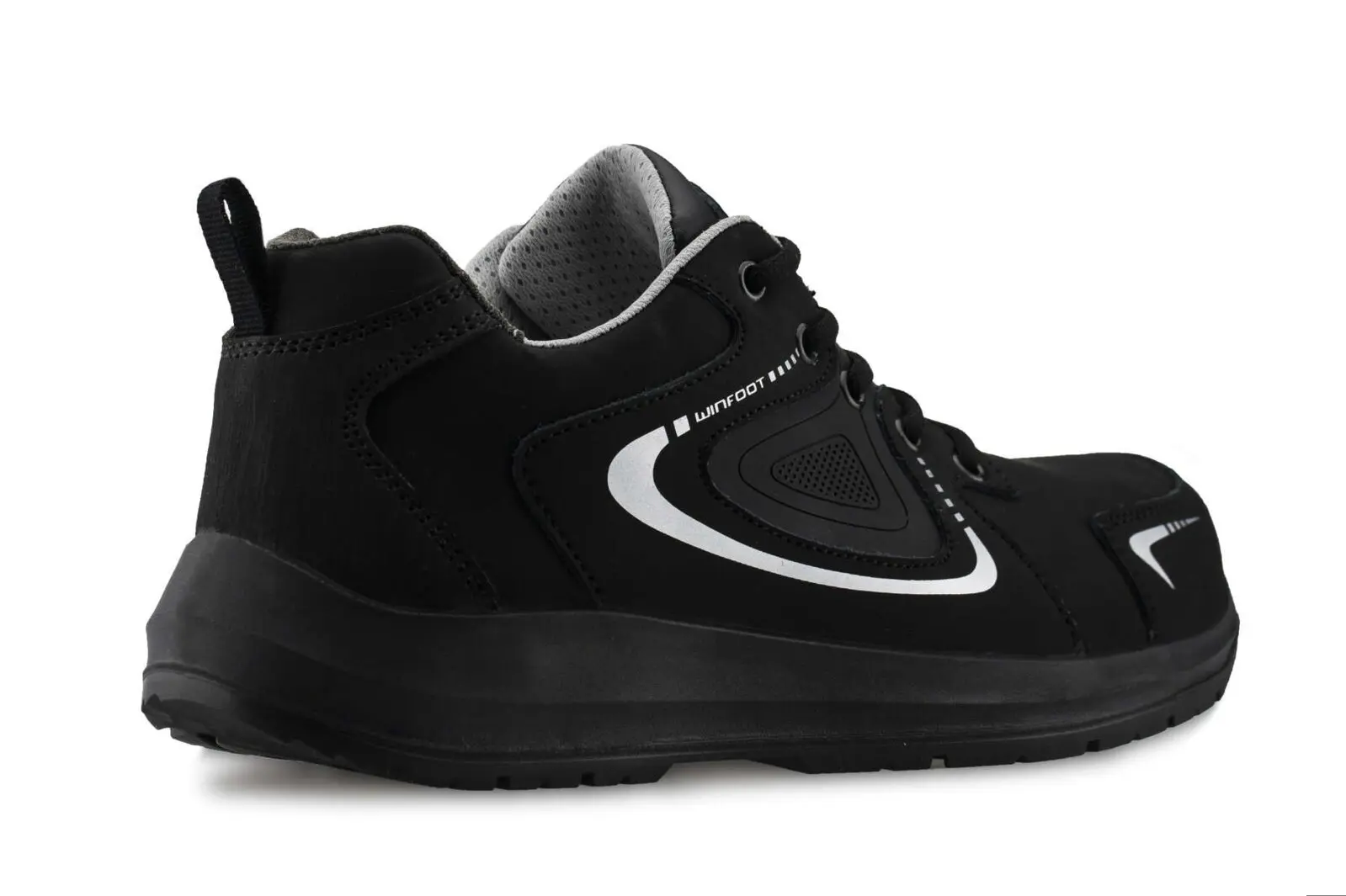 Bezpečnostní polobotka ESD se šněrováním černé, nubuk s hydrofobním účinkem s reflexními prvky a TPU, prodyšná podšívka s maximální absorpcí a desorpce potu, hliníková tužinka, kevlarová stélka, flexibilní, neomezující pohyb. Norma EN ISO 20345 S3 SRC, EN IEC 61340-4-3:2018, velikosti 35 – 47