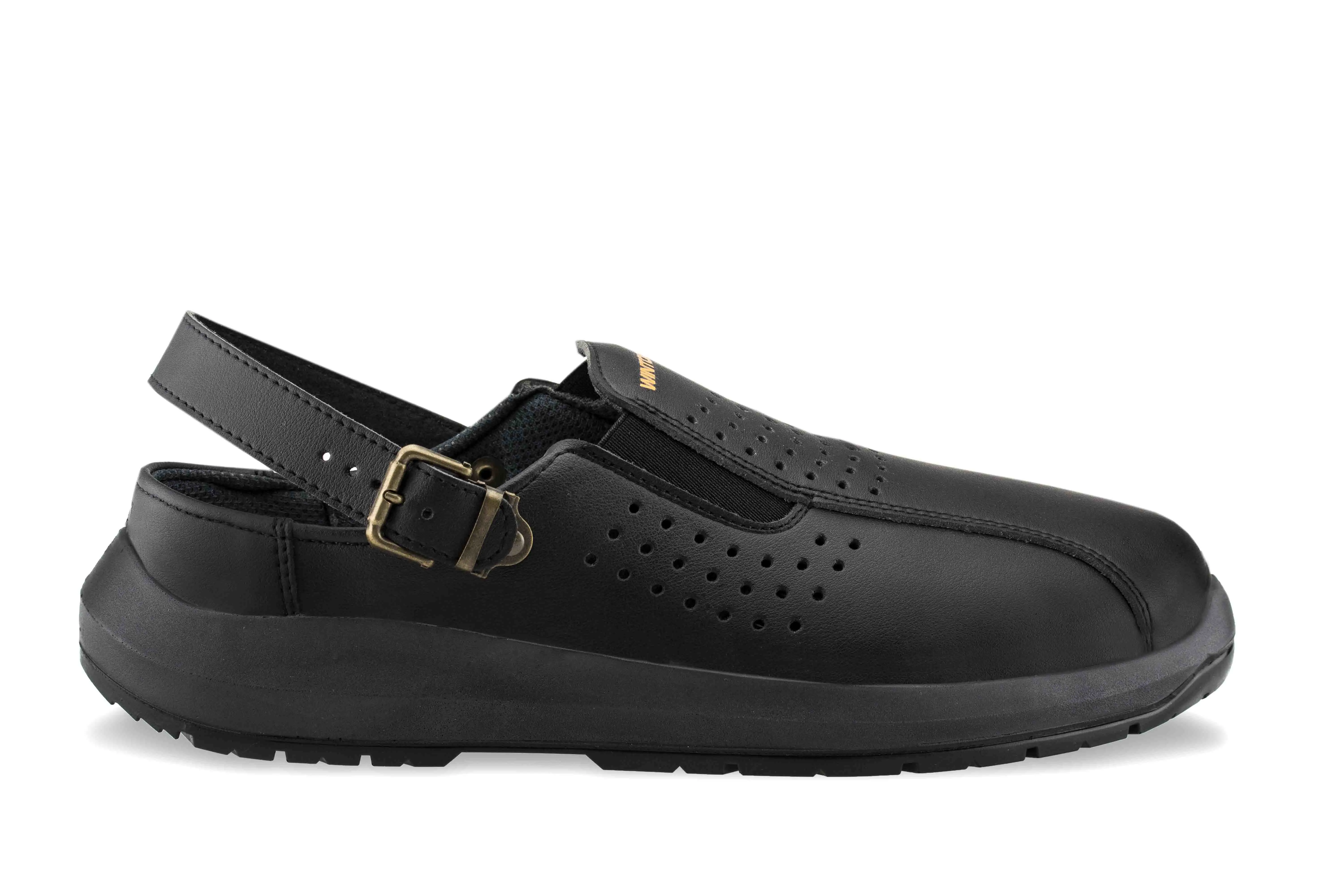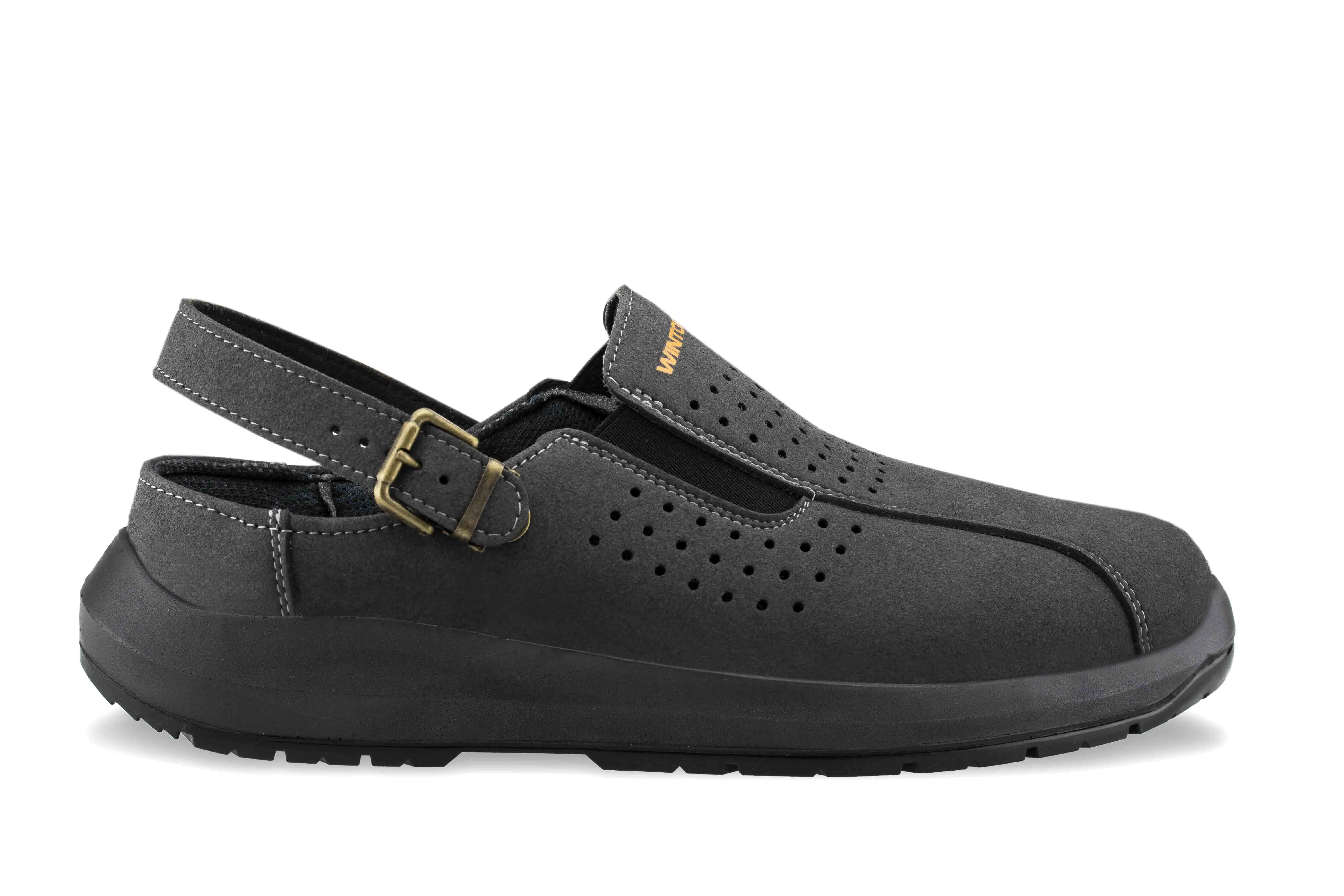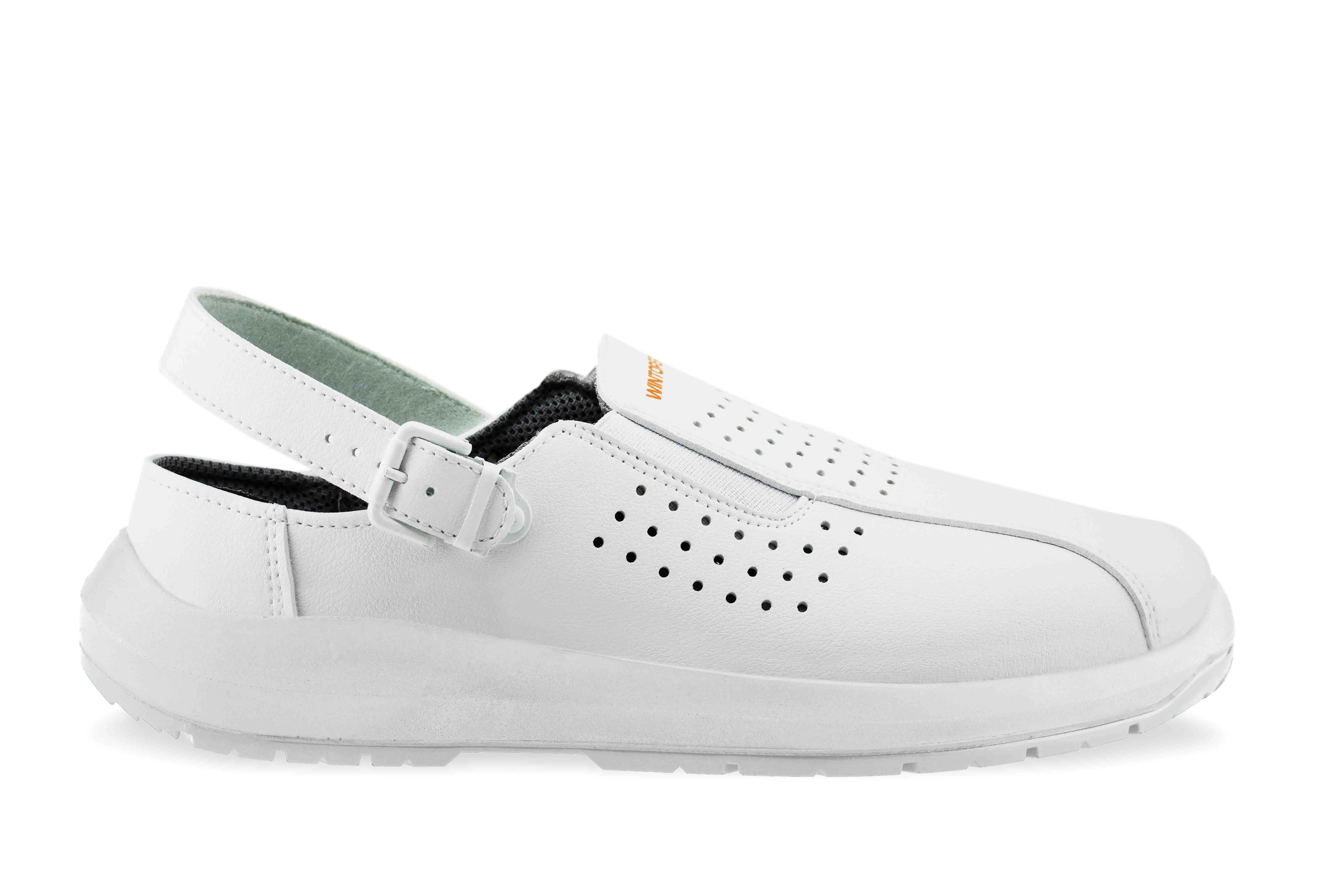 Pohodlná široká lehká sandálová obuv s páskem, vyrobená z perforovaného, hydrofobního, mikrovlákna, které zabezpečuje vzdušnost obuvi. Protiskluzná polyuretanová podešev PU/PU. Vkládací stélka je antibakteriální a anatomicky tvarovaná.