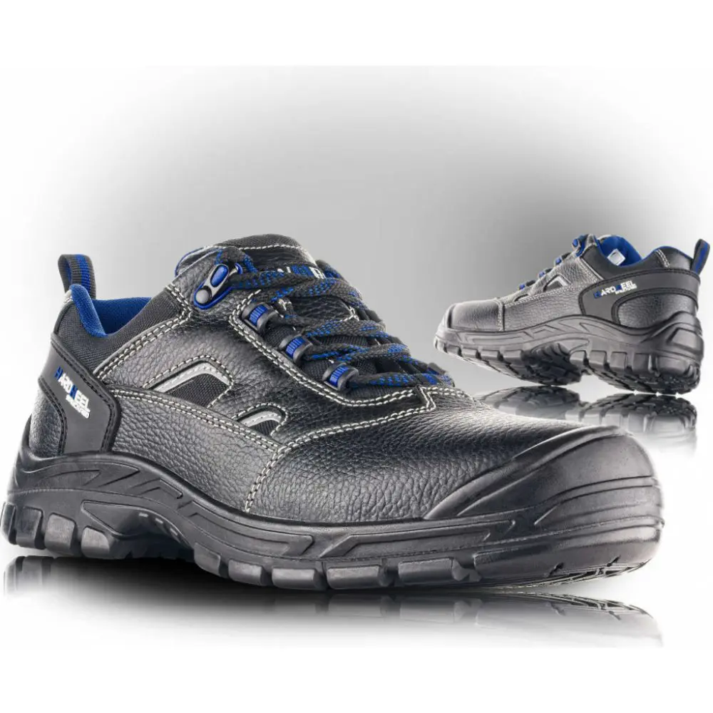 Polobotka bezpečnostní. Materiál: svršek lícová hovězinová useň s dezénem v tloušťce 1,8 - 2,0 mm, podšívka laminovaná prodyšná textilie MESH, vkládací stélka HI-POLY - anatomicky tvarovaná s lehčené polyuretanové pěny potažená textilií MESH, antistatická, podešev PU/RUBBER - do 300°C, olejivzdorná, antistatická, protiskluzová, dvousložkový nástřik. Norma: ČSN EN ISO 20345:2012 (EN ISO 20345:2011). Provedení : S1 HRO SRC - s ocelovou tužinkou. Velikost 36 - 48