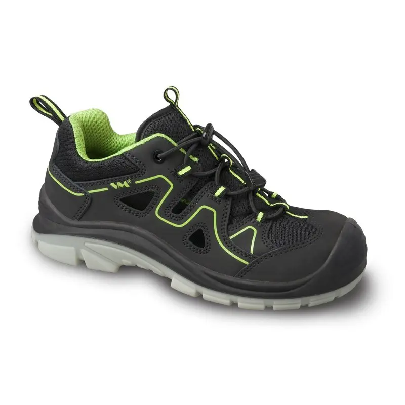 Sandál bezpečnostní - kožený v kombinaci s textilem, NON METALIC. Svršek hovězinová useň povrstvená, broušená v tloušťce 1,8 - 2,0 mm. Podšívka laminovaná prodyšná textilie MESH