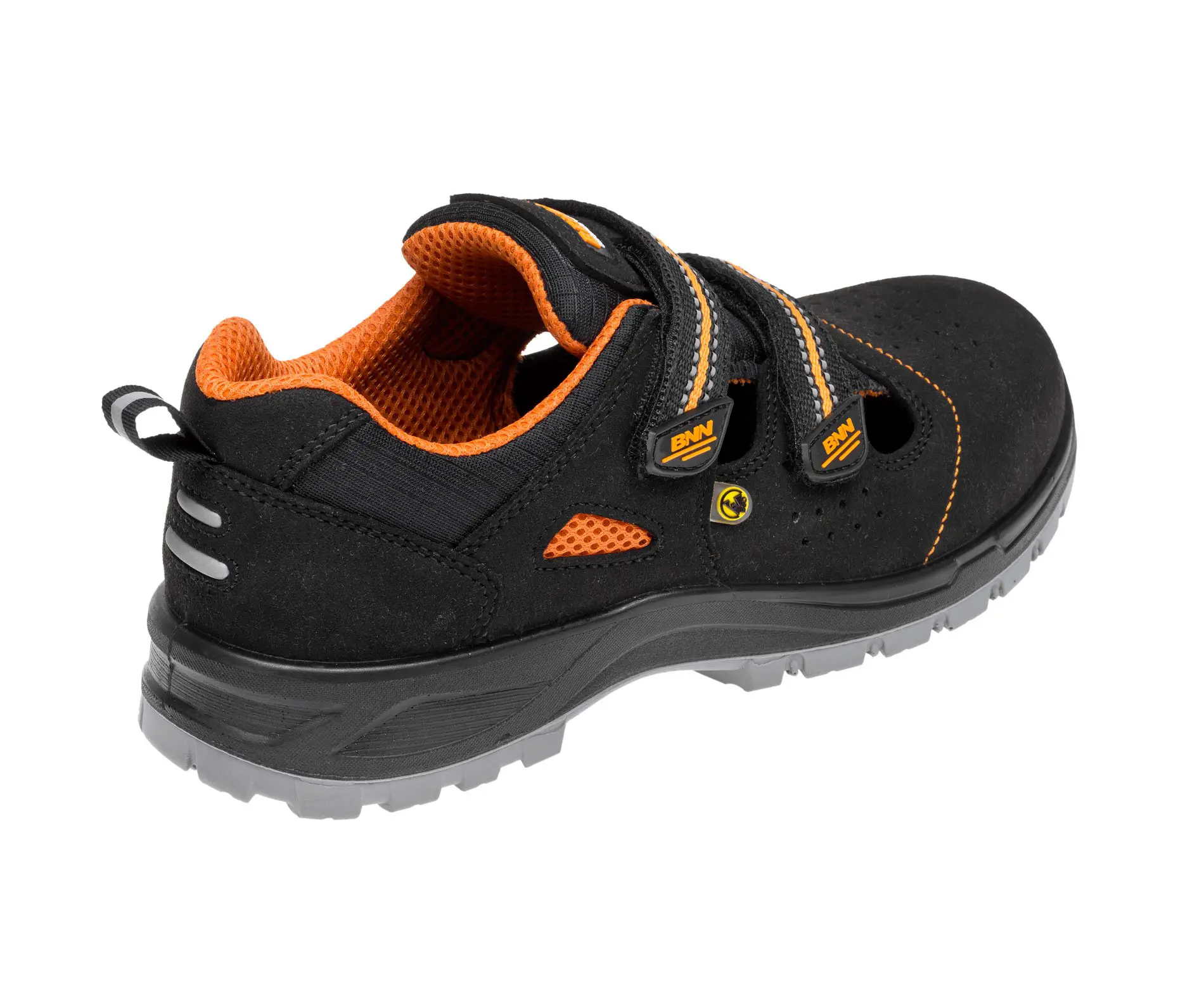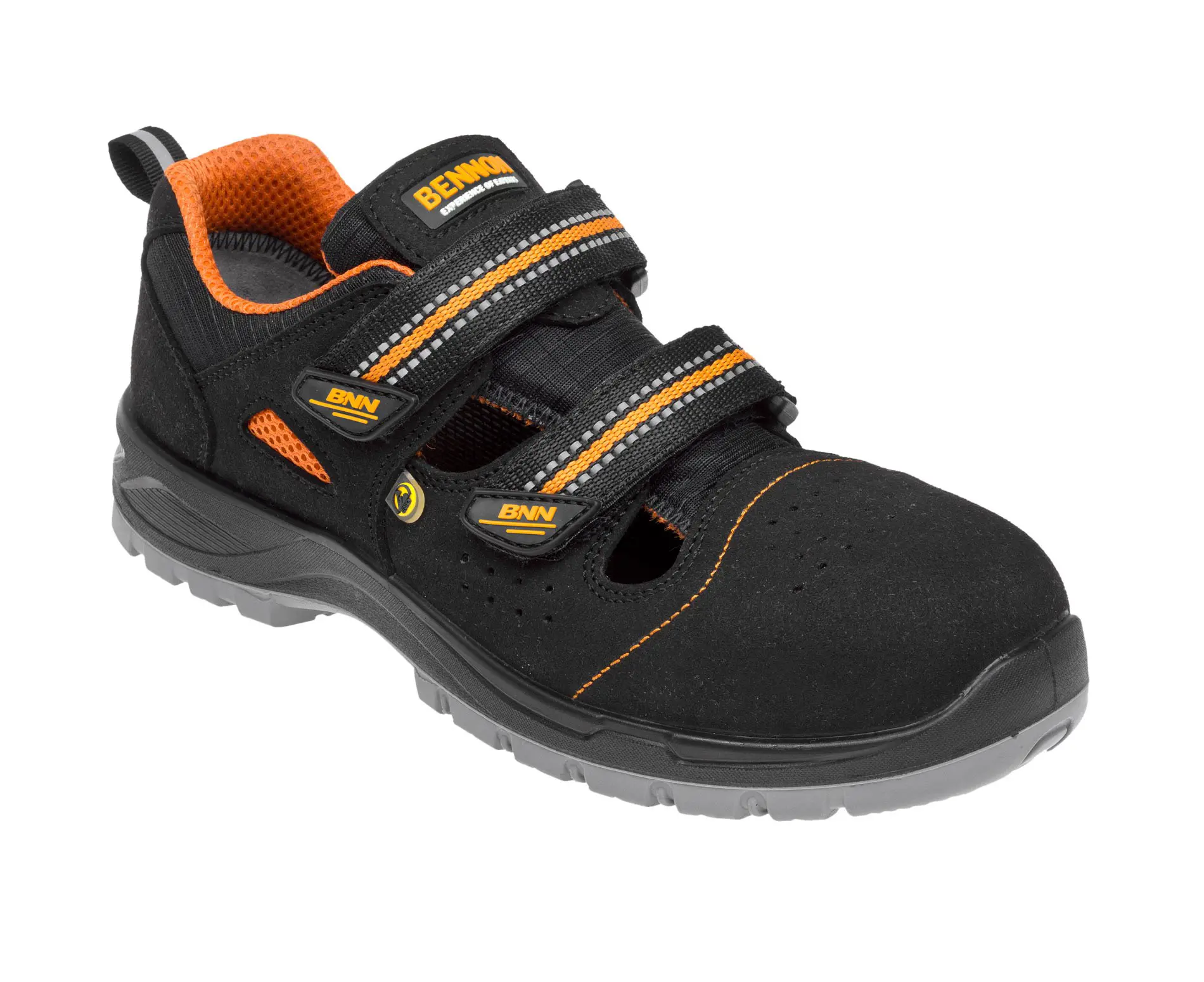 Dvoupáskový sandál BENNON NUX S1P ESD NM SANDAL bez kovových součástí, s komopozitní tužinkou a kevlarovou planžetou. Obuv bez kovových součástí. Svršek bot je vyroben z mikrovlákna, obuv je tak prodyšná. Reflexní prvky v oblasti Achillovy paty a na páscích. Stélka D-Sole, podešev HIGHWAY PU/PU. Obuv je vhodná do provozů vyžadujících antistatické vlastnosti ESD. EN ISO 20345:2011 S1P SRC, ČSN EN 61340-4-3:2002; klimatická třída 3. Materiál: mikrovlákno, Vlastnosti produktu: