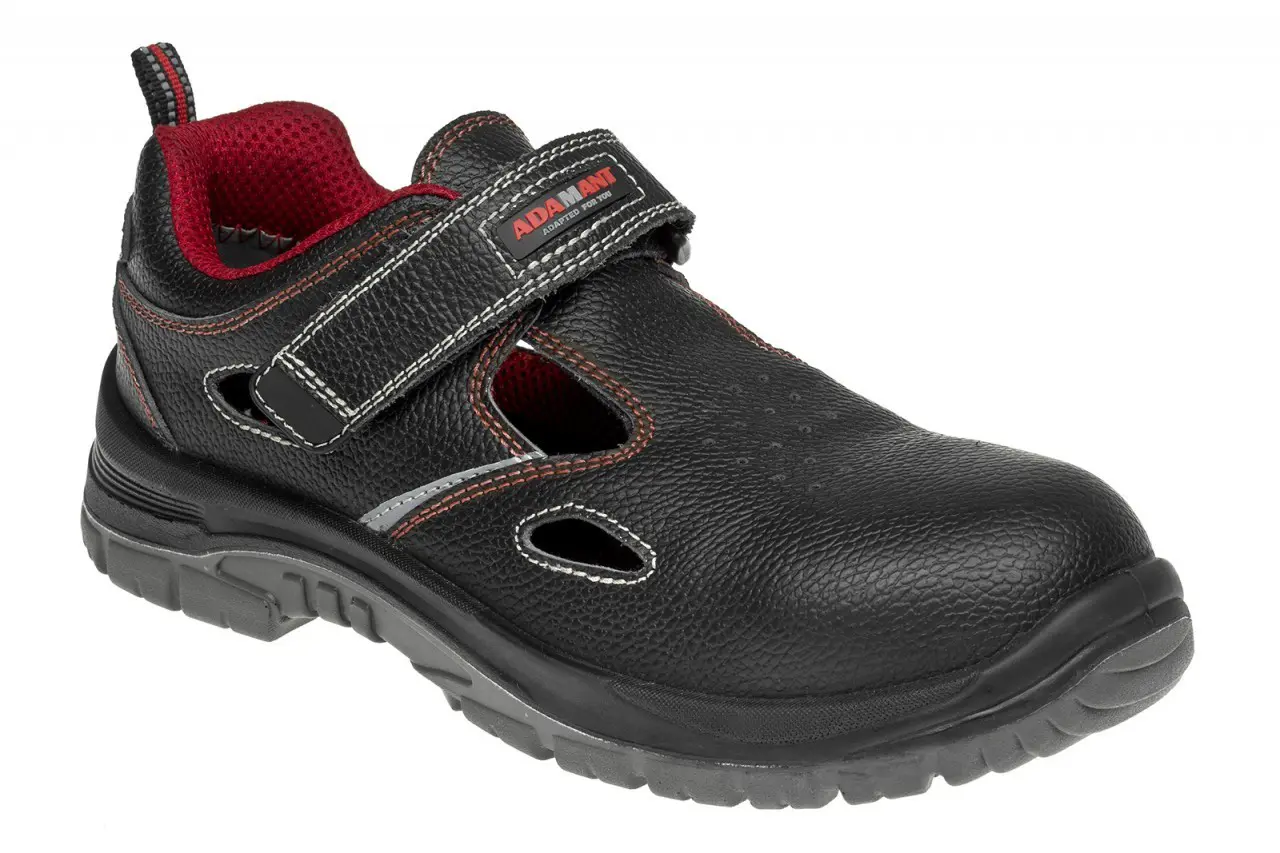 Bezpečnostní sandál ADAMANT NON METALLIC S1 SANDAL C21012 s kompozitní tužinkou. Svršek bot je vyroben z hovězinové usně. Podšívka je textilní, z materiálu EVA + sandwich MESH, pěna v tloušťce 3-4 mm. V patní vnitřní části je microfibre – materiál odolný proti oděru. Vkládací stélka EVA + MESH je anatomická, vyměnitelná. Dvojvrstvá dezénová podešev Odysea PU/PU je aplikovaná technologií přímého nástřiku a zabezpečující absorpci energie v patě. Velcro uzavírací pásek obsahuje reflexní prvky. Obuv je antistatická, odolná proti pohonným látkám, uklouznutí, tužinka chrání prsty před poraněním a planžeta před propíchnutím. EN ISO 20345:2011 S1 SRC. Materiál: hovězinová useň Barton print, Vlastnosti produktu: sandál S1