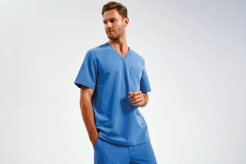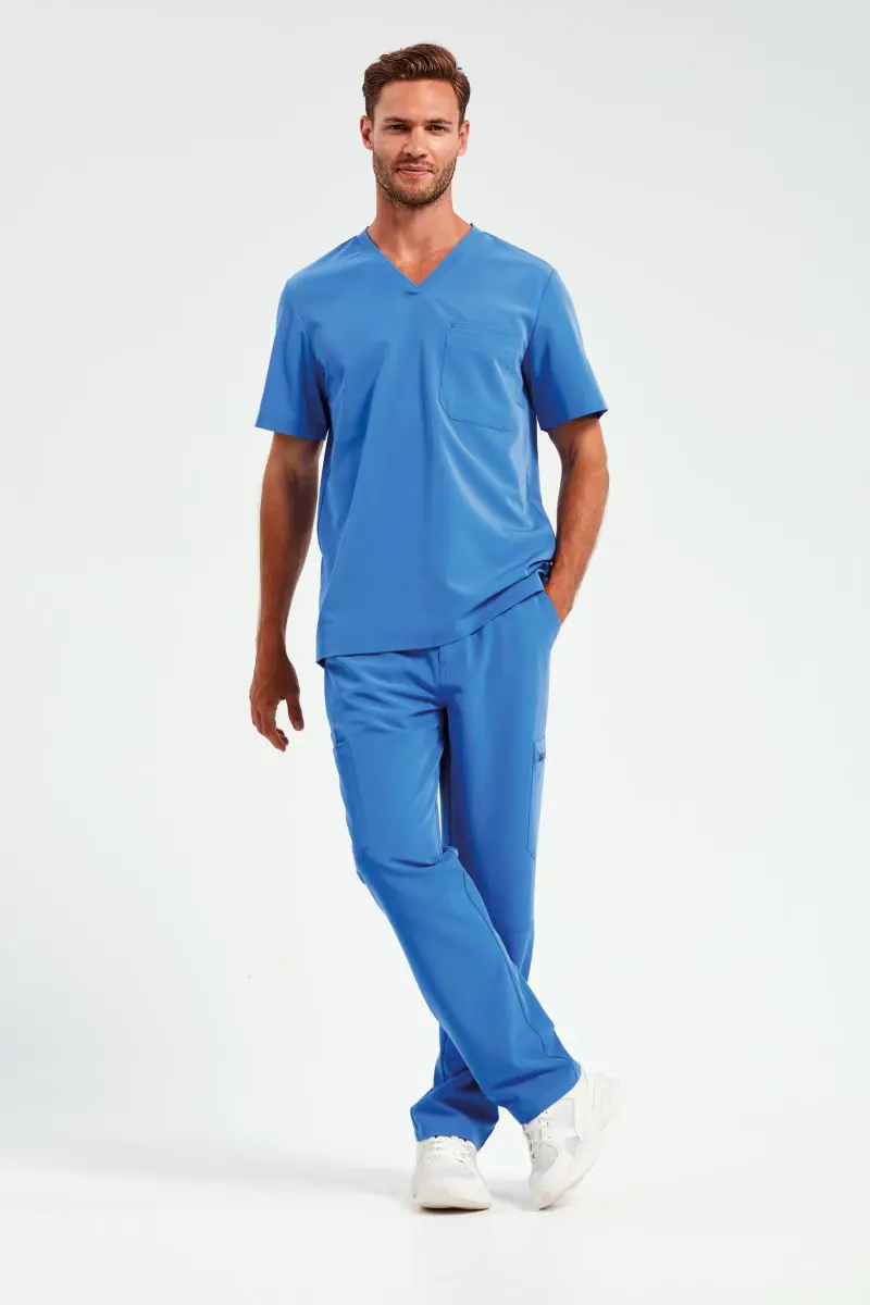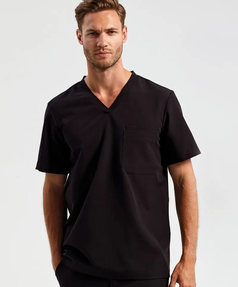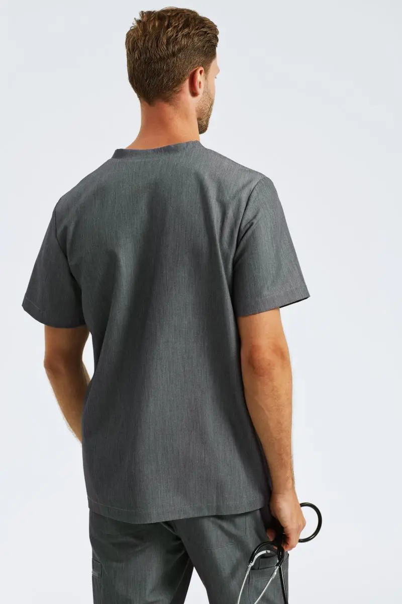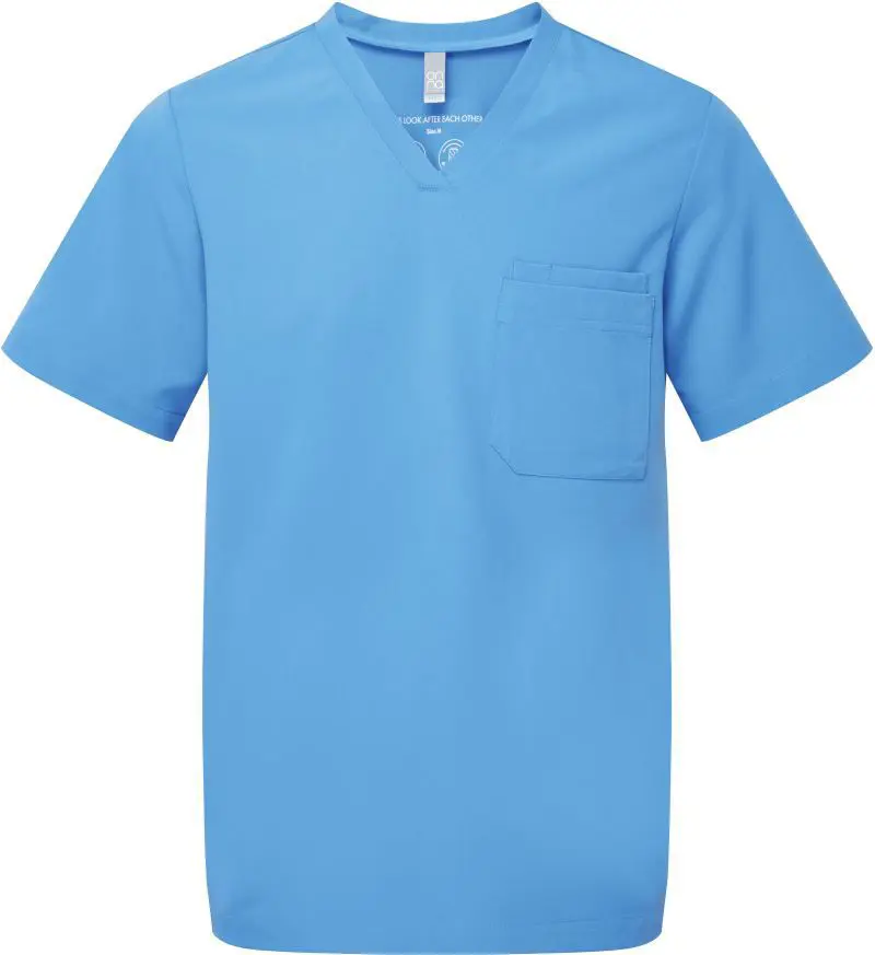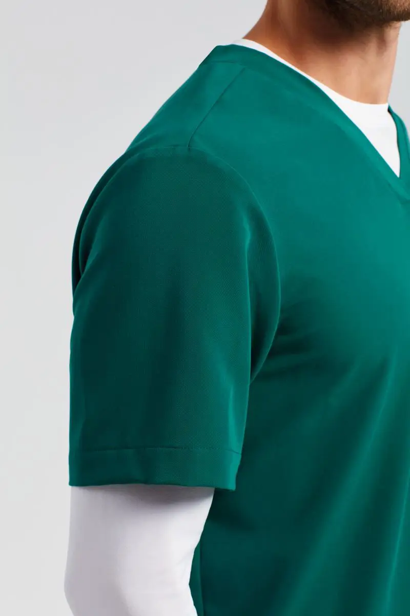 Pánské strečové tričko s výstřihem do V. Prodyšný materiál, výstřih do V, levá náprsní kapsa, boční rozparky, záševky na zádech, 4-cestný strečový materiál, odolný materiál, nemačkavé, easy care, regulující vlhkost, lze sušit v sušičce při nízké teplotě, nelze chemicky čistit. Složení materiálu 210g/m2, 42% polyester, 33% recyklovaný polyester, 19% viskóza, 6% elastan. Velikosti S-XXXXL
