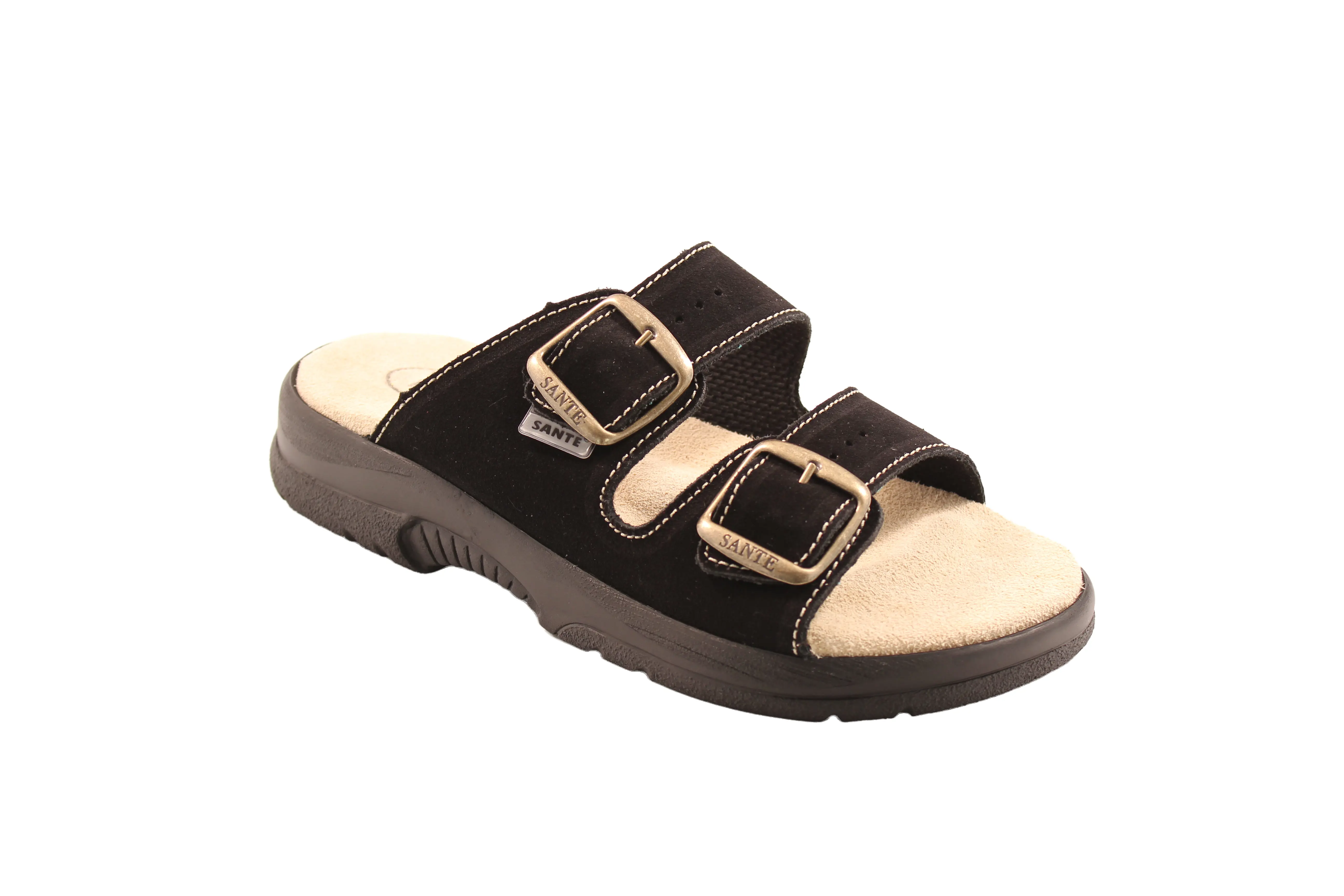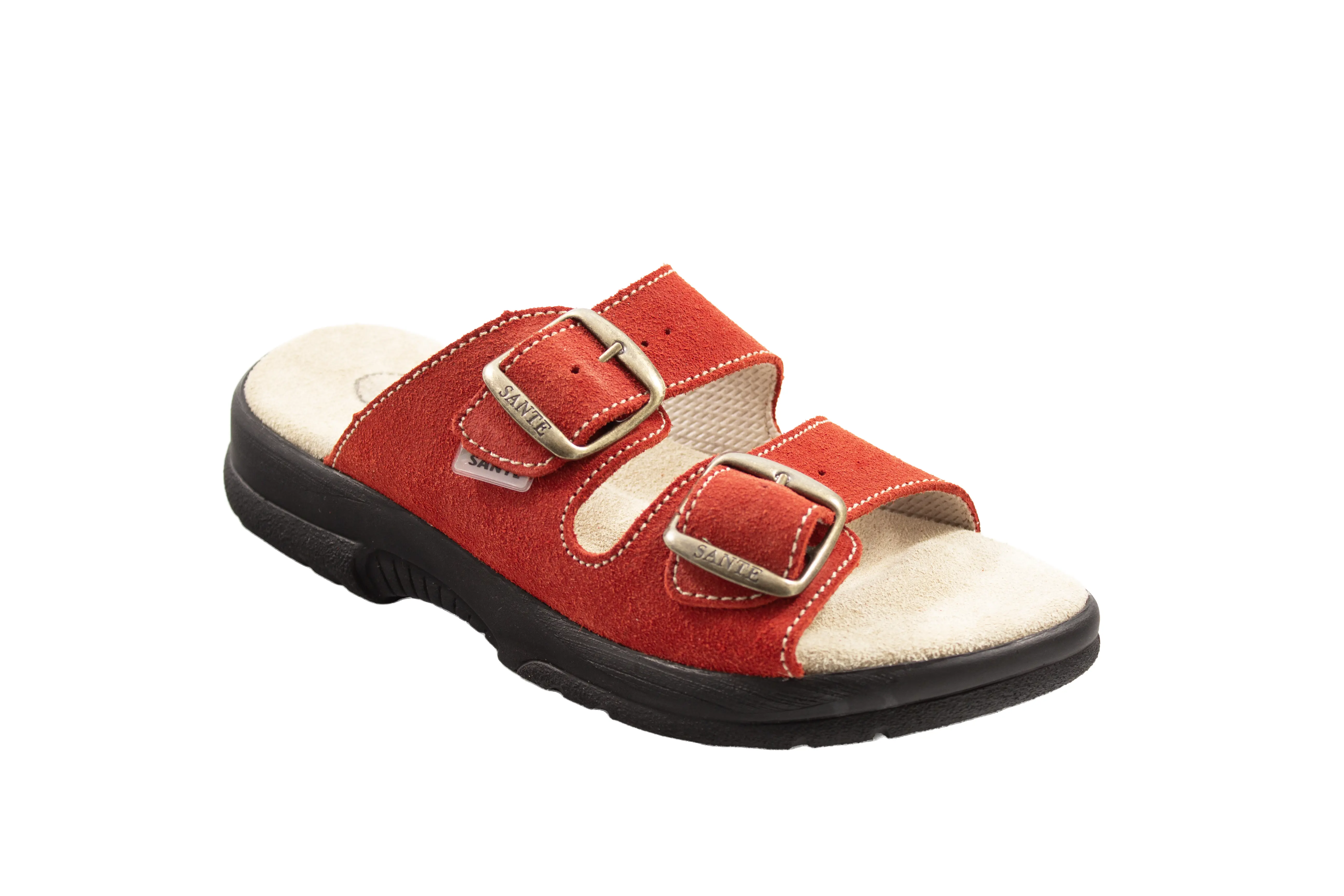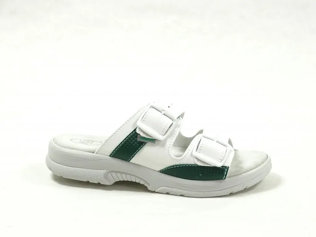 Dámské zdravotní pantofle, dvě nastavitelné přezky, protiskluzová podešev, prodyšný přírodní materiál (přírodní useň+textil), certifikovaná obuv. Tvarovaná stélka, která se přizpůsobí přesně vašemu chodidlu.