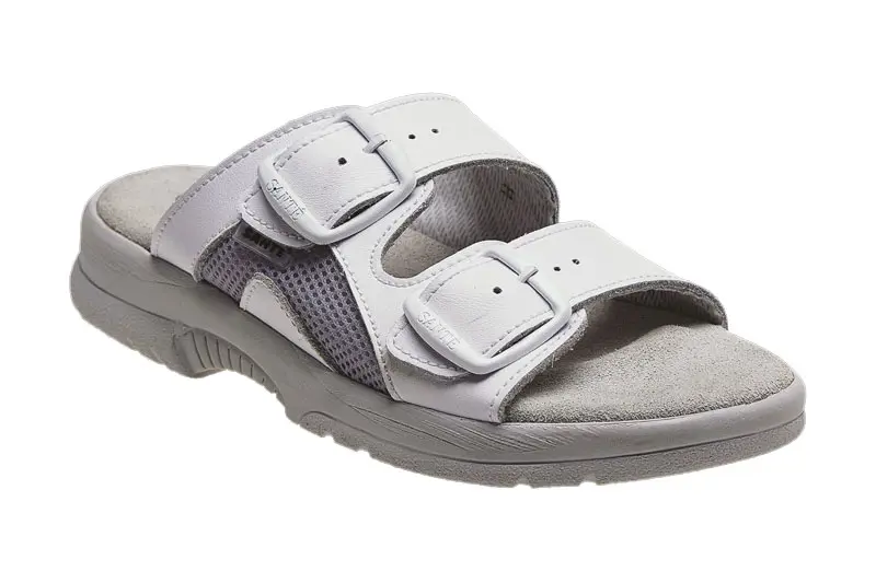 Dámské zdravotní pantofle, dvě nastavitelné přezky, protiskluzová podešev, prodyšný přírodní materiál (přírodní useň+textil), certifikovaná obuv. Tvarovaná stélka, která se přizpůsobí přesně vašemu chodidlu.
