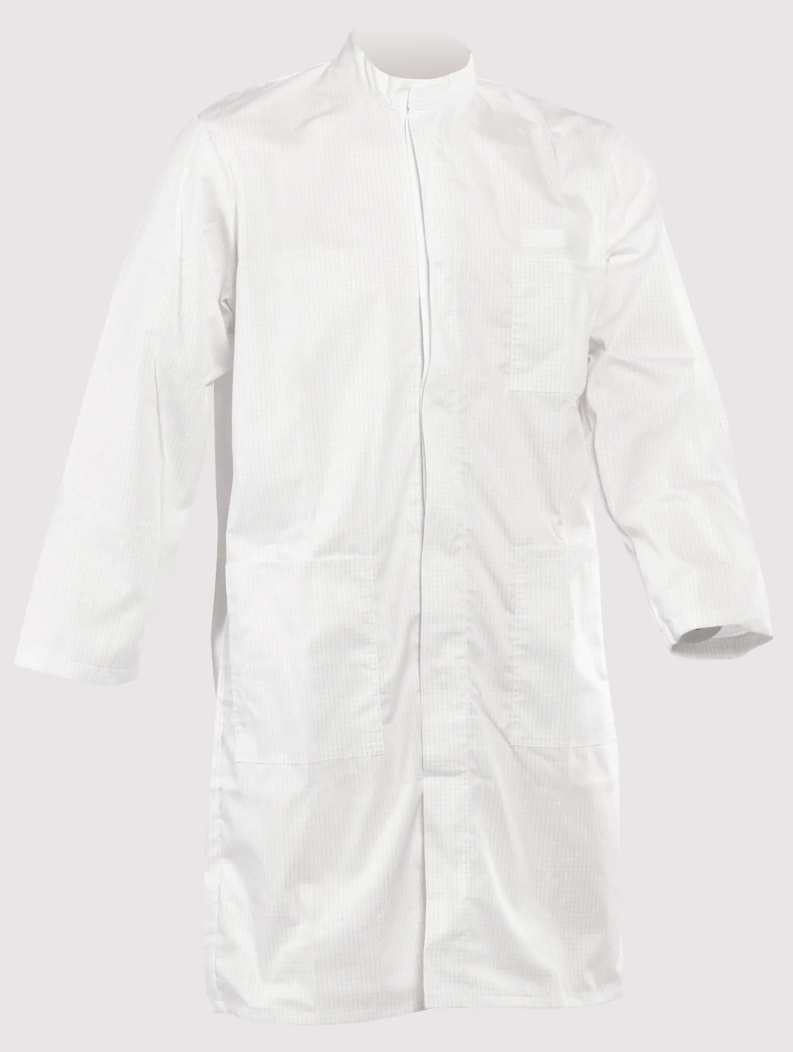 Antistatický ochranný plášť Sting se stojáčkem zapínaný na kryté zapínání.
