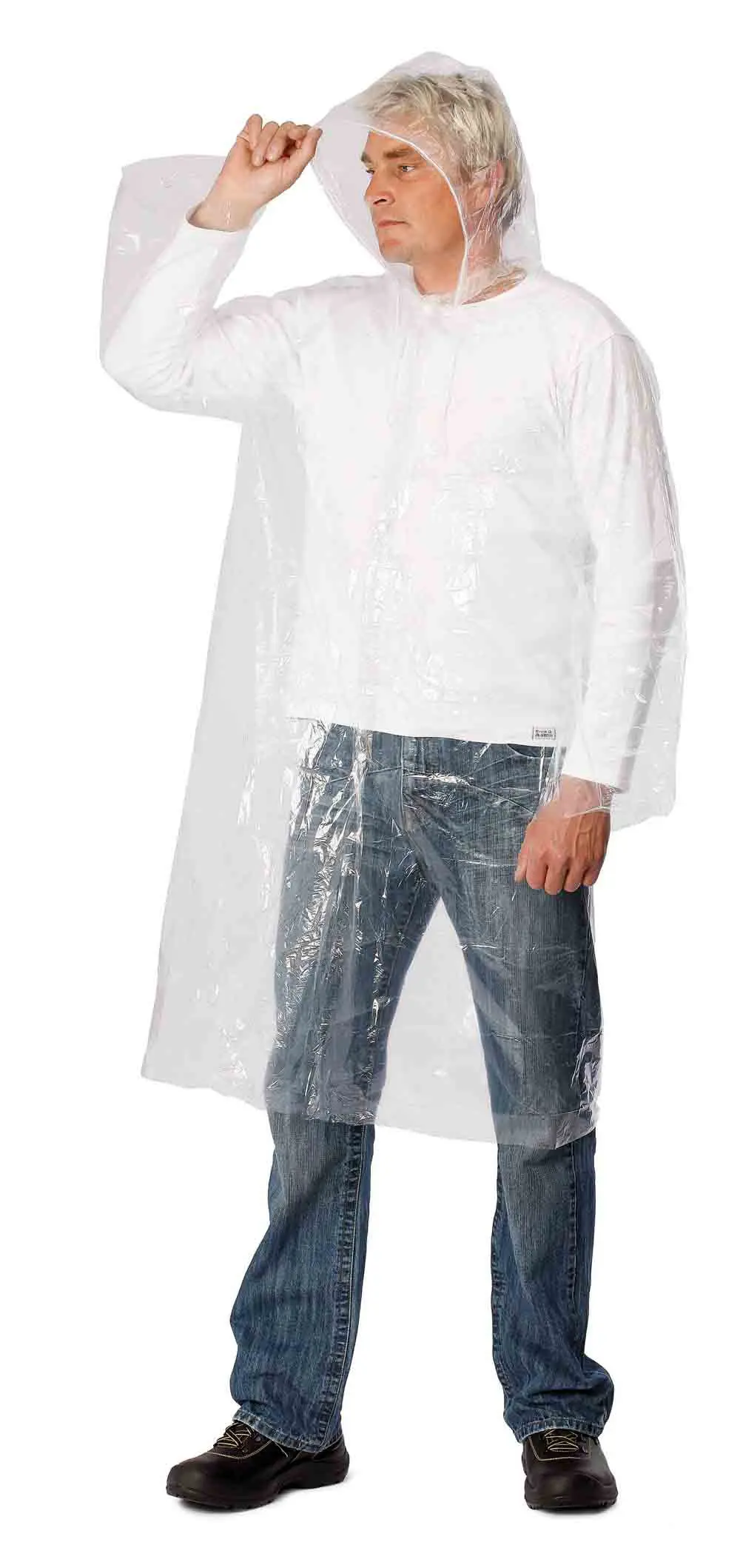 Lehká pláštěnka pro opakované použití, přední zapínání na plastové druky, volný střih k okamžitému použití přes klasický pracovní oděv, všechny spojovací švy jsou zataveny, transportní obal