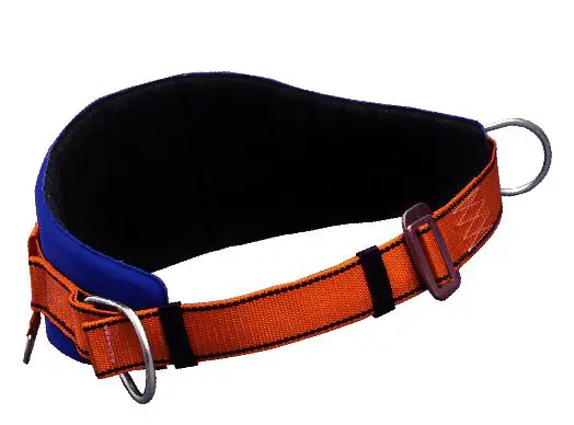 Pracovní polohovací pás s bederní výztuhou s polohovacími oky a sponou k seřízení velikosti, poutky k připojení brašny na nářadí