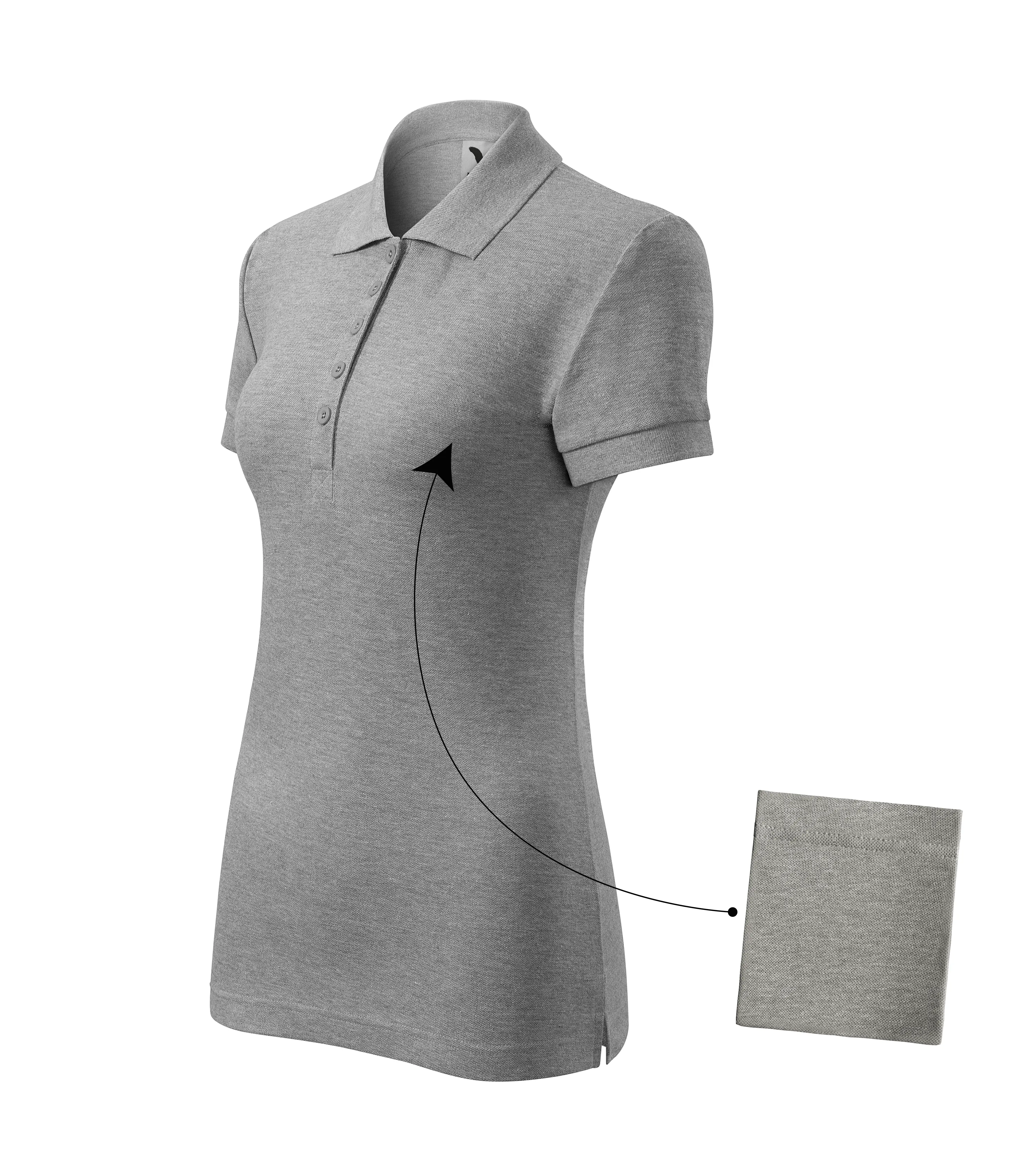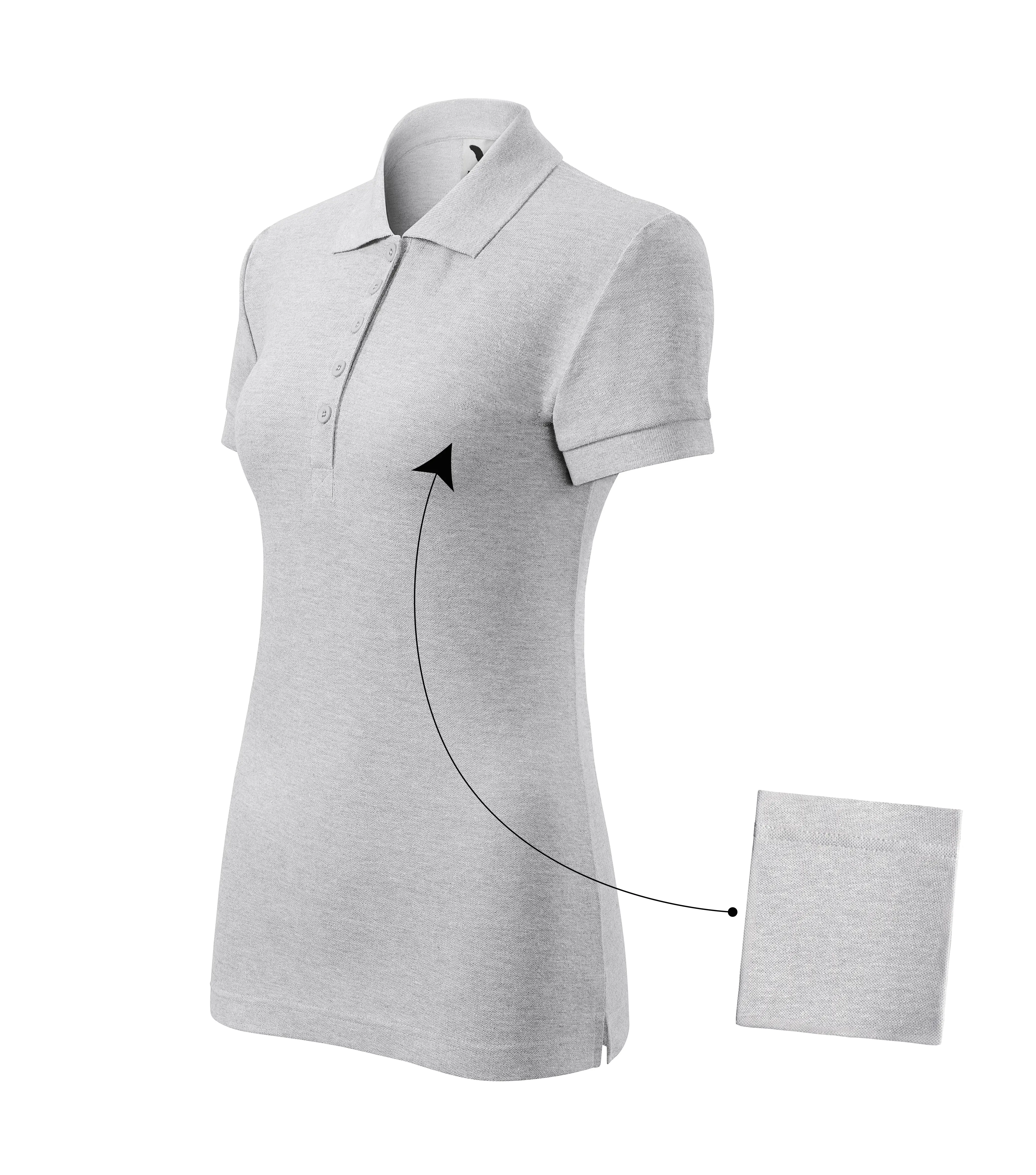 Dámská polokošile střední gramáže v projmutém dámském střihu, vhodná pro potisk a výšivku. Límeček a lemy rukávů ze žebrové pleteniny. Léga s 5. knoflíčky v barvě materiálu. Rozparky v bočních švech. Baleno s náprsní kapsičkou zvlášť pro snadnou aplikaci brandingu.