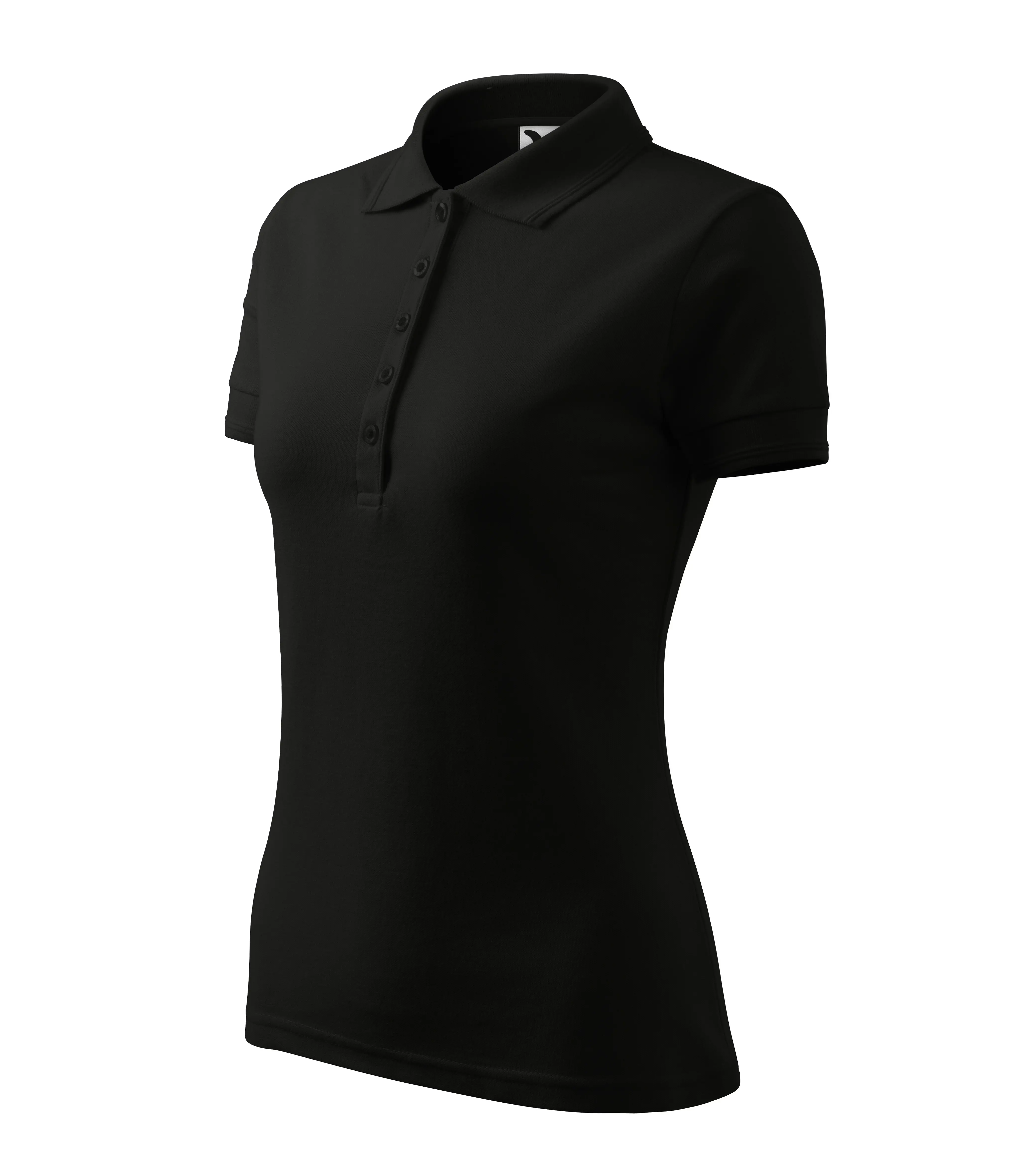 Kvalitní dámská polokošile vyšší gramáže. Nová kvalita pleteniny - menší očka pique vhodnější pro potisk i výšivku. Límeček a lemy rukávů z žebrové pleteniny s dvojitým reliéfním proužkem po obvodu, léga s pěti knoflíčky v barvě materiálu, elegantní dámský projmutý střih do hloubky boků. Široká barevná škála.