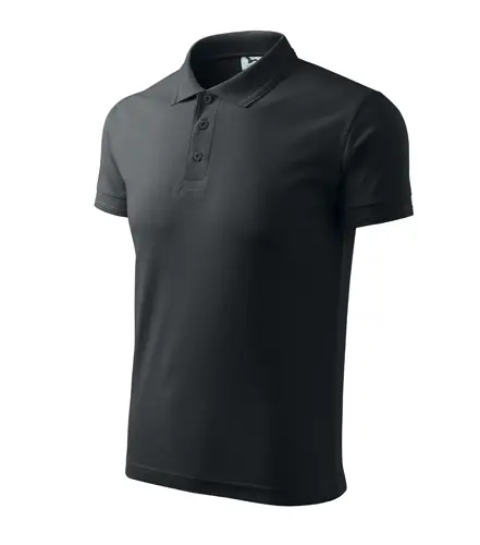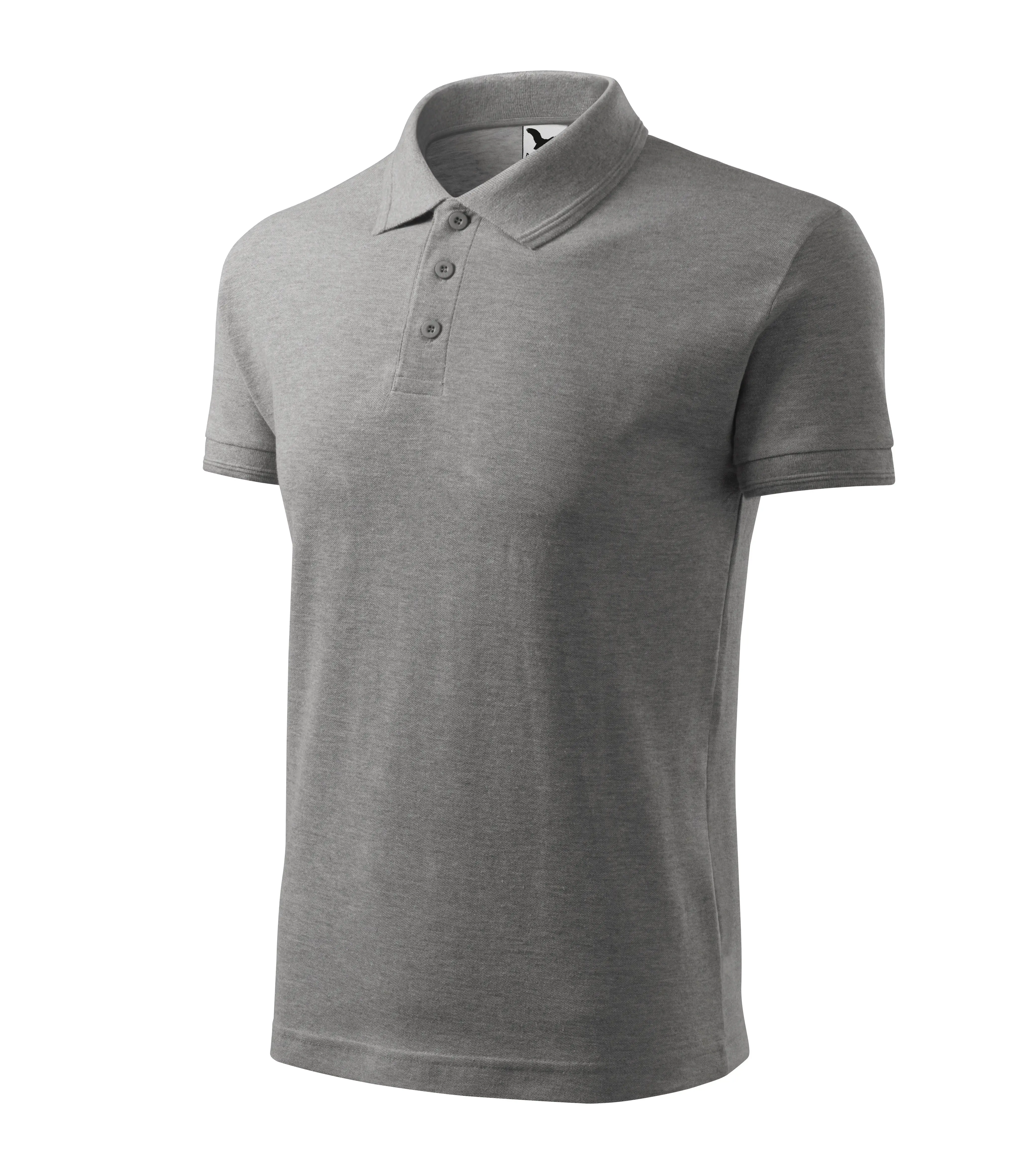Kvalitní polokošile vyšší gramáže. Nová kvalita pleteniny - menší očka pique vhodnější pro potisk i výšivku. Límeček a lemy rukávů z žebrové pleteniny s dvojitým reliéfním proužkem po obvodu, léga se třemi knoflíčky v barvě materiálu, volná silueta s bočními švy. Široká barevná škála.