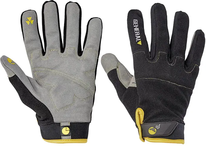 Rukavice z umělého semiše v dlani, Spandexu na hřbetu s chrániči kloubů, se stahovací manžetou na suchý zip a podšívkou v dlani.. Vel. 9, 10 ,11