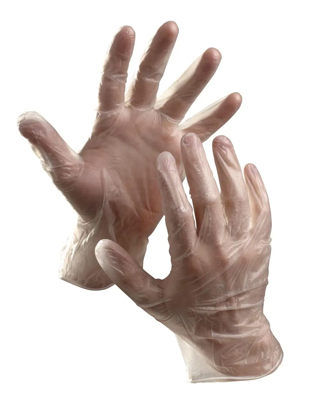 Jednorázové rukavice z tenkého vinylu, pudrované, balení po 100 ks. Jsou atestovány pro přímý krátkodobý styk s netukovými potravinami, bez silikonu. Využití rukavic: Vhodná pro všeobecnou práci a manipulaci v potravinářském a hygienickém prostředí. Povolání: Laboratoře, zdravotní péče, potravinářský průmysl, zpracovávání potravin, úklidová činnost.