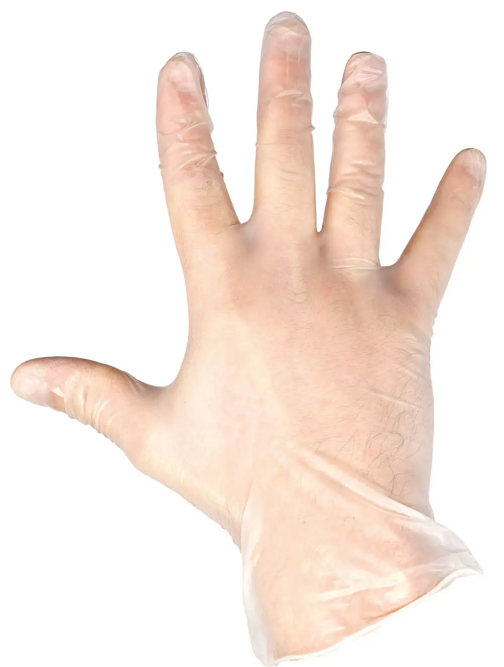 Jednorázové vinylové nepudrované rukavice vhodné pro krátkodobý styk s netukovými potravinami.