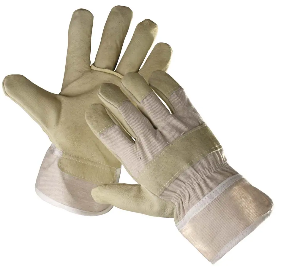 Kvalitní rukavice z vepřové štípenky v dlani, bílé bavlněné tkaniny na hřbetu a manžetě a s teplou podšívkou.