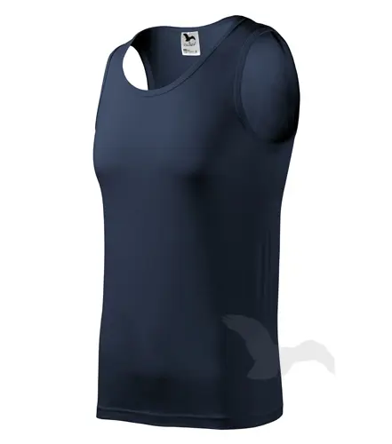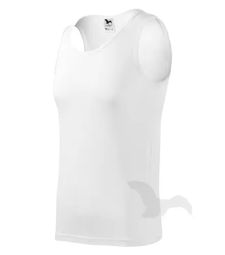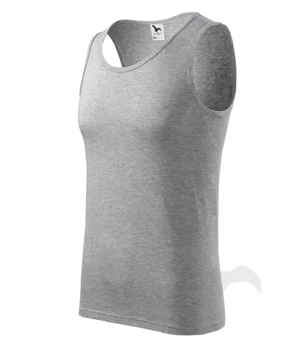 Pánské tílko střední gramáže, tubulární střih, průkrčník a průramky začištěny lemem z vrchového materiálu, zpevněný ramenní šev. Single Jersey, 100 % bavlna. Velikosti S - 2XL