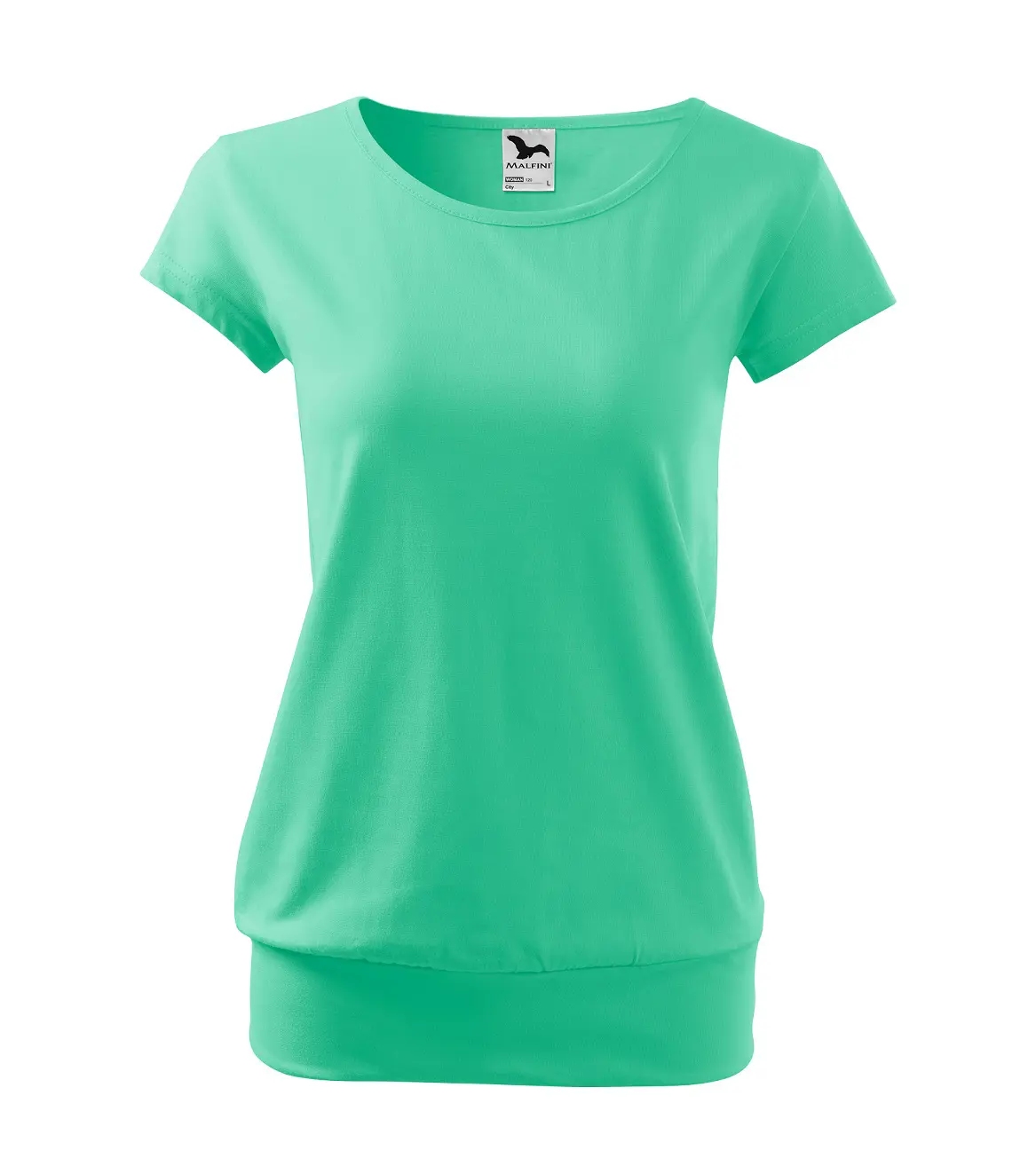 Trendové dámské triko s velmi krátkým rukávem volnějšího střihu, v dolním kraji všité do širokého lemu. Kulatý průkrčník s úzkým lemem ze shodného materiálu. Ramena zpevněna všitým proužkem. Triko sahá do hloubky boků. Silikonová úprava zajišťuje měkký a splývavý omak, materiál 100% bavlna 150g/m2, vhodné pro potisk i výšivku